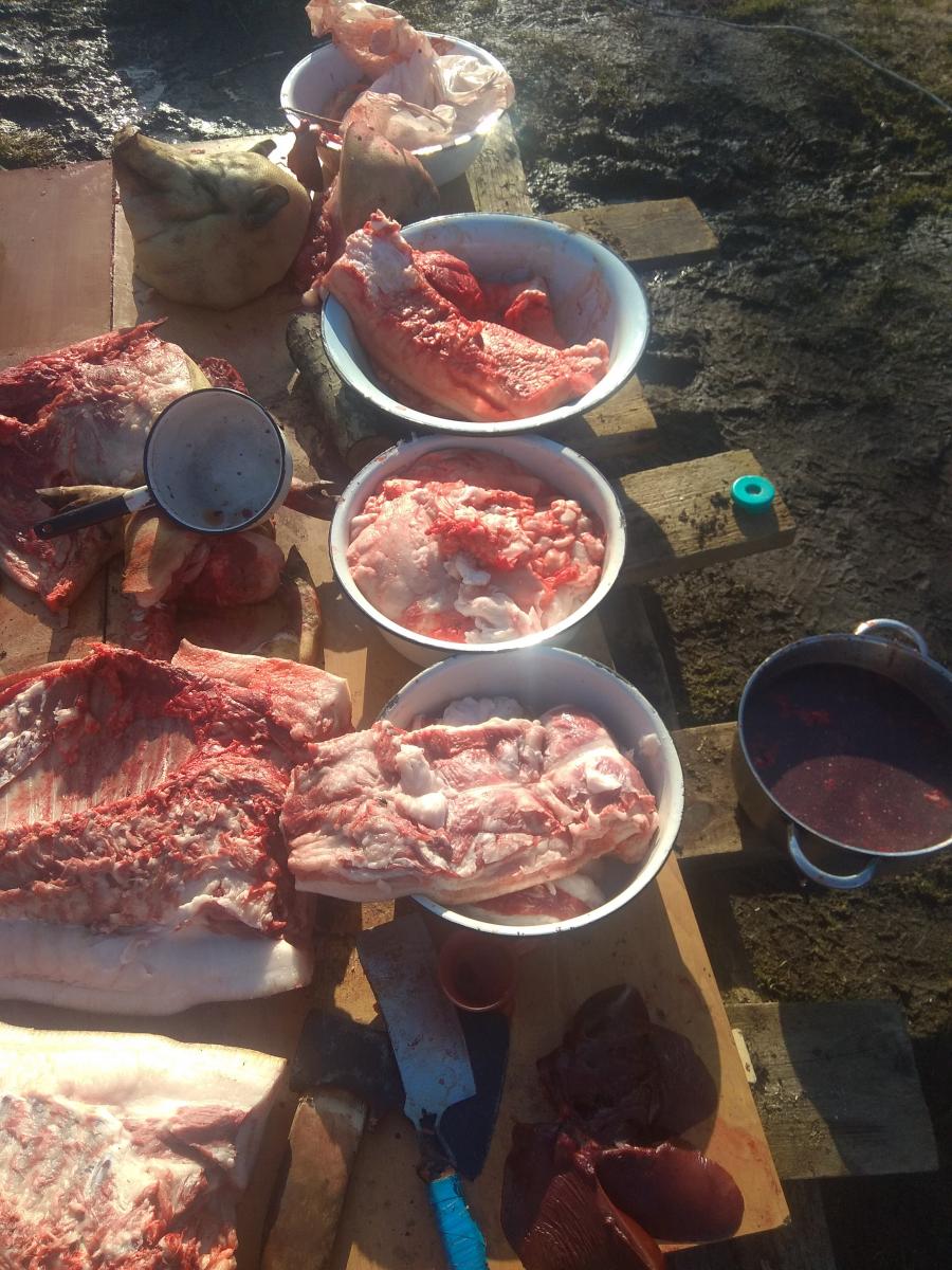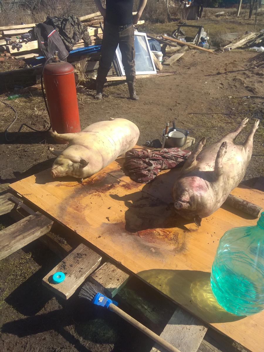 Свинтусы откармливались исключительно хлебом и овощами.. С осени сожрано на 5 свиней тыквы 1,5 тонны, картофель 1тонна, капуста 500кг.. +по 100кгхлеба еженедельно.. + свёкла, морковь, кабачки со своего огорода.. Никаких помоев, столовских отходов и прочего дерьмА..