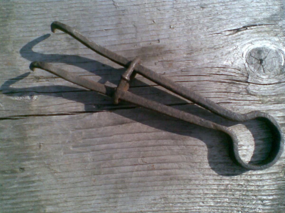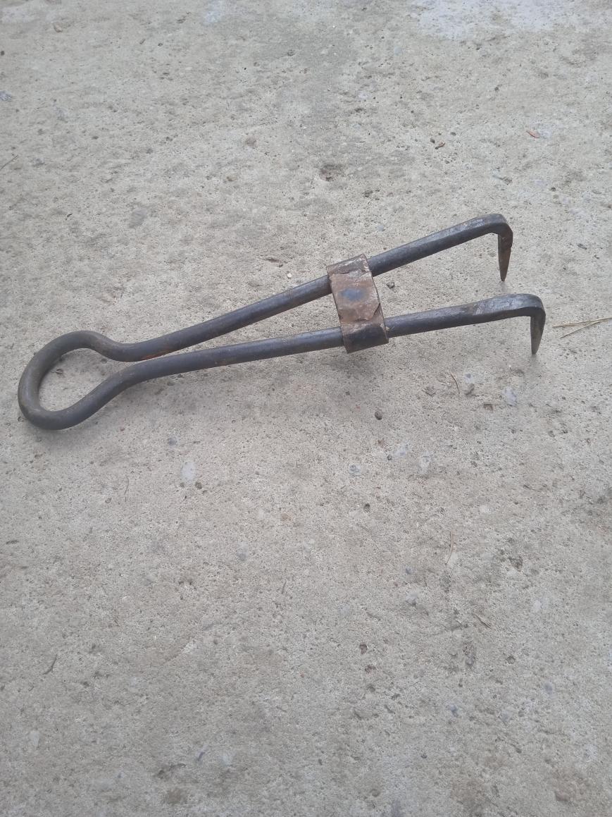 Думаю на прижиме должен быть какой то фиксатор, зажать и зафиксировать. На этом инструменте нет фиксатора, или что то протягивают через эту хреновину или что то разминают.на острый конец, как я понимаю, насаживалась деревянная рукоятка, и служил это инструмент каким-то прижимом.