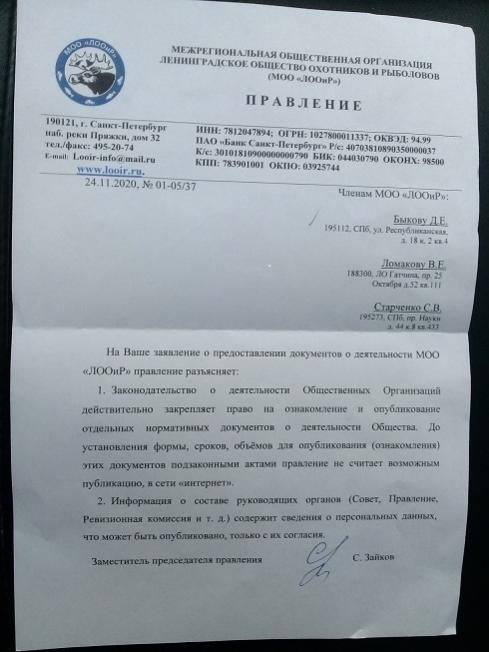 Пишу Вам как охотник, вступивший в ЛООиР 6 марта 1976. С 1977 по 1980 год работавший секретарем первичного охотничьего коллектива Горного института, а с 1984 по 2001г председателем первичного охотколлектива Ленинградской комплексной геологической экспедиции.