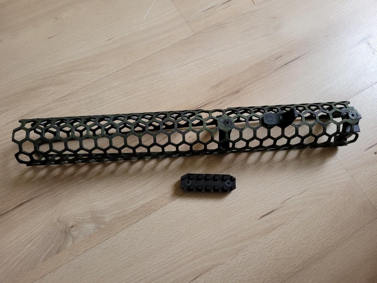 Цевьё Гексагон старого образца с перемычкой, в комплекте планка, клык и доп планка без закладных. Цена 5000руб.