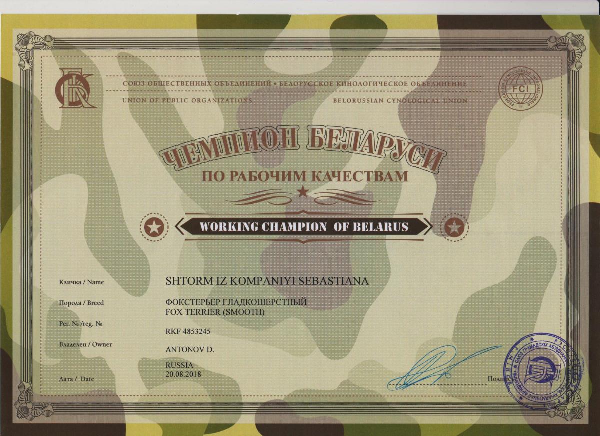 6. Все дипломы за рабочие качества с указанием по виду дичи:2-1лисаП,2-2лисаП,1ст-барсук подсадной,1ст лиса восьмерка,3ст-Кровяной след. Чемпион Белоруси по рабочим качествам,3х кратный породный победитель состязаний норных собак.