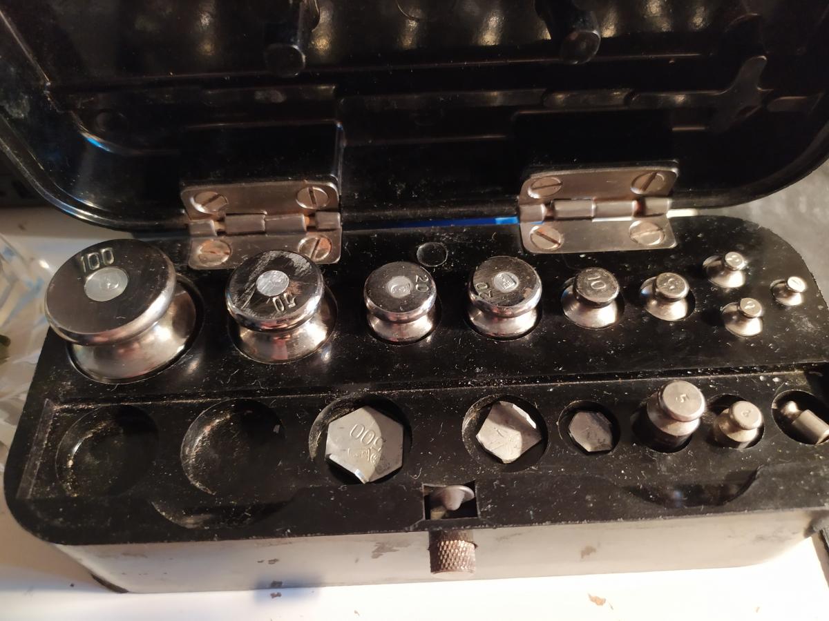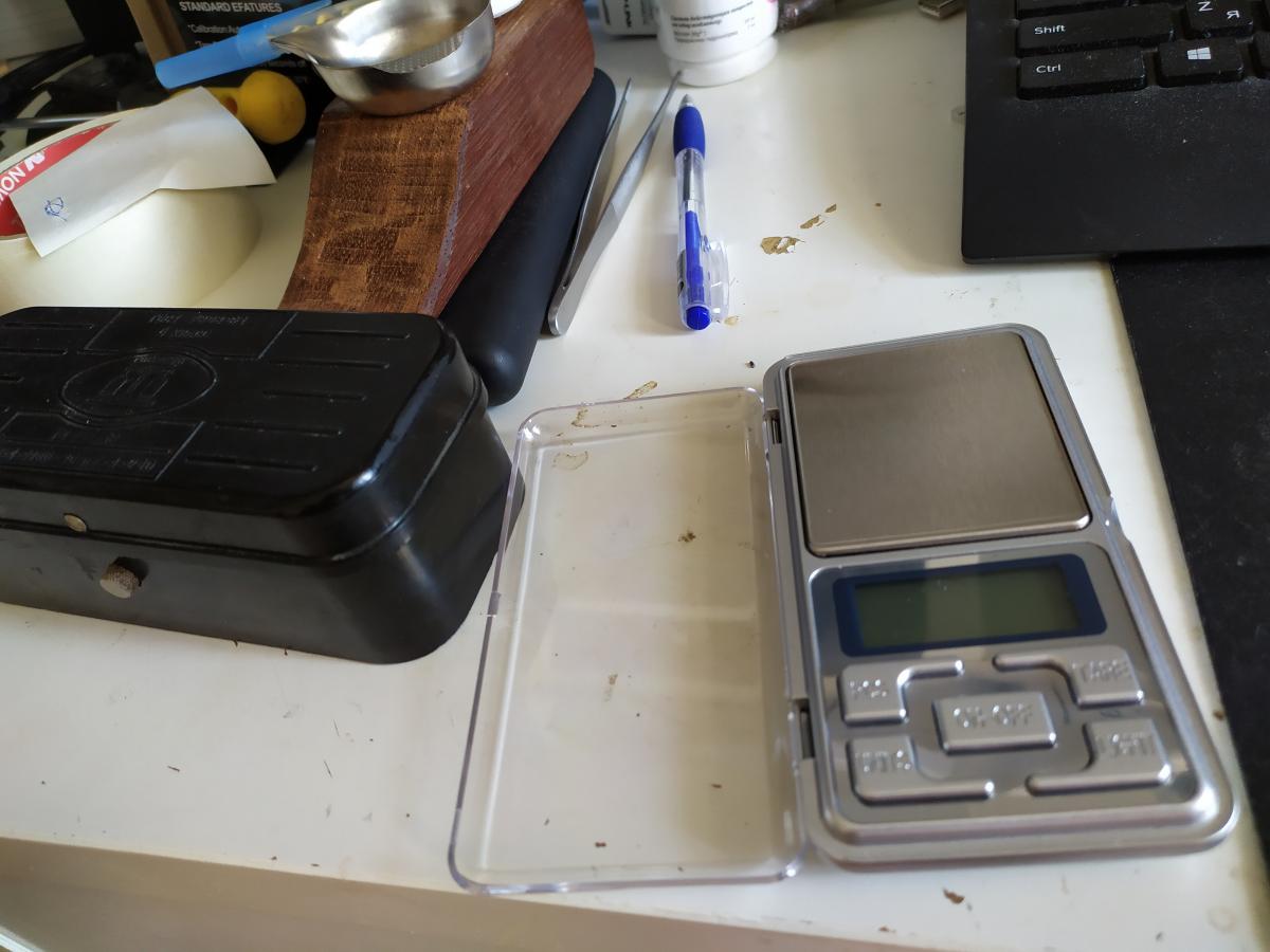 Сравнение проводилось в несколько этапов: первым делом сравнил показания замеров гирек из набора советских весов. Это получилось быстрое завешивание - ставишь гирьку на весы, а весы через секунду-две выдают результат измерения. Обоих переключил в грейны. Результат на фото.