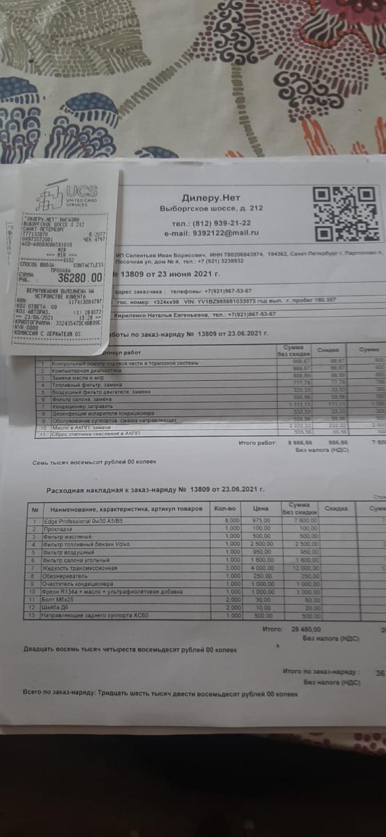 Все квитанции о проведенных ТО, ремонтах и заменах у меня есть.