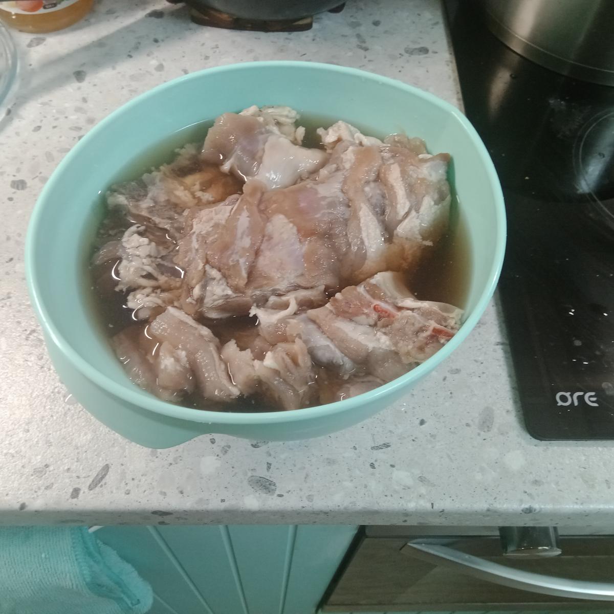 Заливаем водой. Можно ложку уксуса туда и ставим в холодильник на ночь ,ну или утром , чтоб вечером готовить.