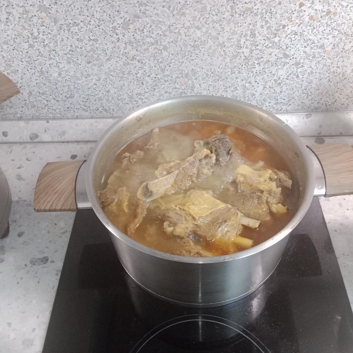 После холодильника ставим на огонь и варим 1.5 , 2 часа на слабеньком огне. В процессе варки кидаем туда порезанный пополам лимон, соль,перец, всё что кому по вкусу, хуже не будет.