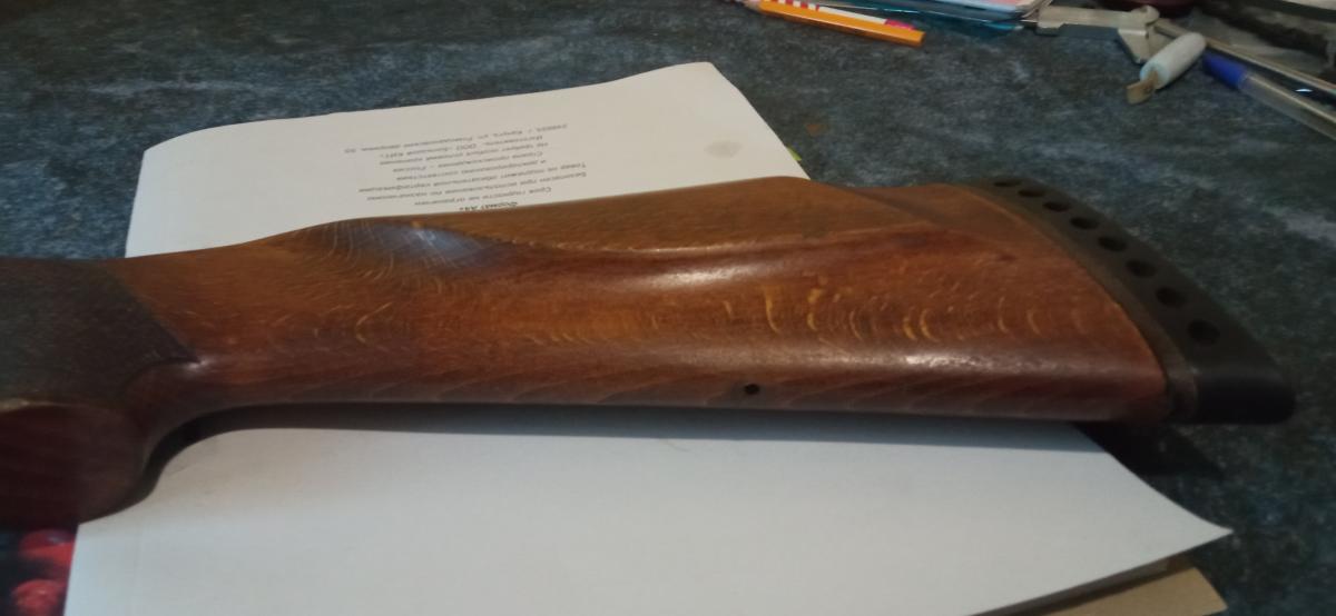 Лежит 10 лет без дела. Тогда же пропитывал лняным маслом. Покупал потому что красивое. Хочу махнуть тк имется деревянное штатное цевье.