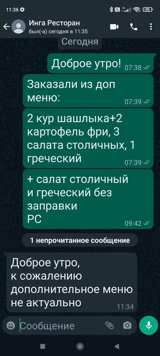 Из дополнительного меню - греческий салат - 1.И ещё, я выше в теме указывал блюда, которые идут дополнительно к основному меню. Администрации ресторана нужно знать заранее заказ этих блюд, пожалуйста отпишитесь в этой теме кто чего желает до 9 декабря. Это не основные их блюда, поэтому подготовиться им нужно заранее!