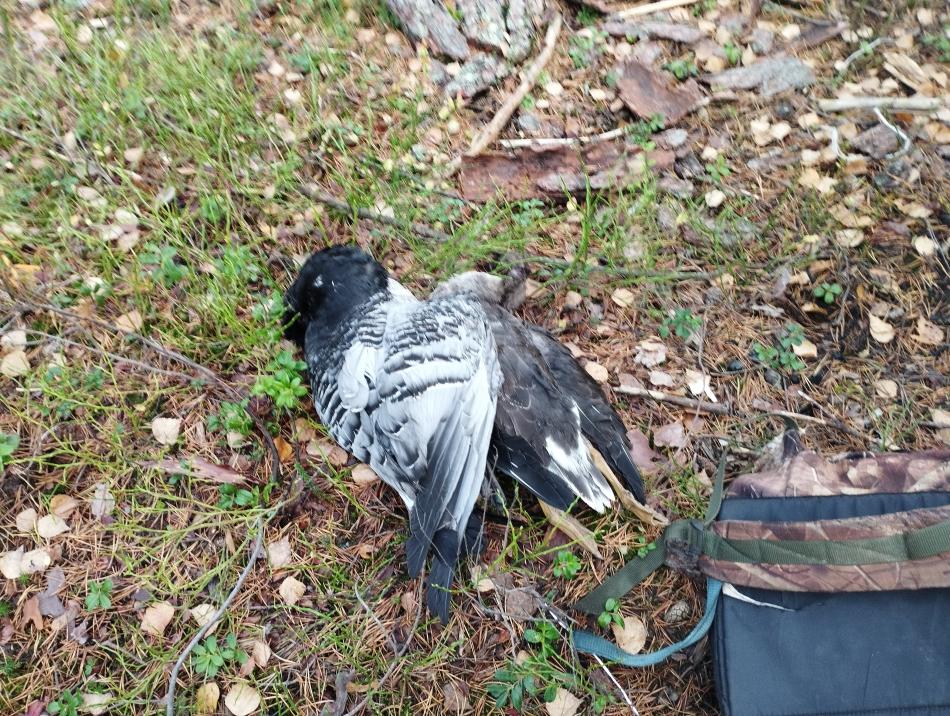 Приехали на одно из полей. Пустил собаку, та понеслась искать, я оглянулся, а на поле 6 гусей сидят метрах в 50. Я пошел на них в наглую. Подпустили метров на 30. Я по сидячему сторожу один раз выстрелил и на подъеме еще раз по группе. Все гуси полетели, выстроили строй и исчезли на фоне леса. Я расстроился - как можно было промазать? Пошел по направлению их полета, а соба моя нюхтит поле. Вдруг смотрю снова они сидят метрах в 70. Снова иду на них. Собака заметила и на потяжке тоже к ним под 90 градусов. Подошел снова метров на 30, Алька к ним кинулась и гуси стали взлетать. Я первым попал и гусь упал подранком, второй раз не попал. Алька поймала подбитого, а я увидел лежащего еще одного. Значит я попал при первом подходе, гусь утянул и упал, за ним села и стайка, которую я обстрелял повторно.