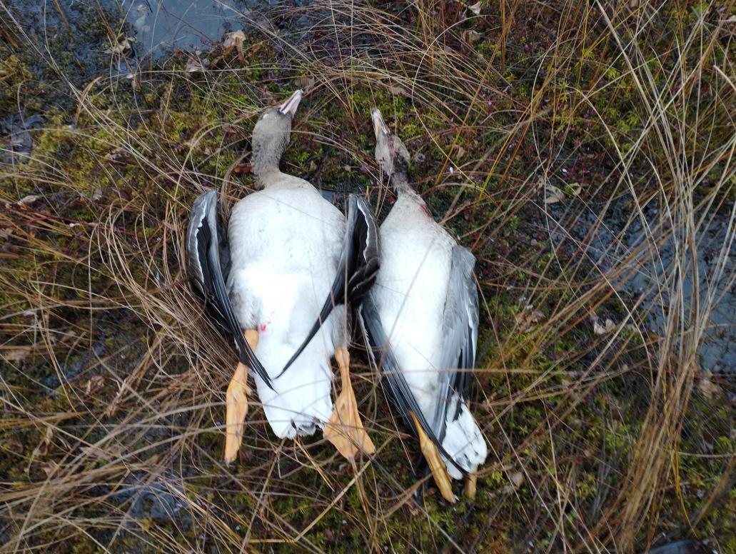 На болоте летит хорошо, но весь далеко. Одна стая присела метрах в трестах. Минут через пятнадцать поднялась и прошла мимо на предельном расстоянии. Уронил двоих, нашел одного. Второй упал очень далеко, на обратном пути поищу. Пока ходил за первым, прозевал хороший налет, но и того нельзя было оставлять, оказался подранком, пришлось добирать.