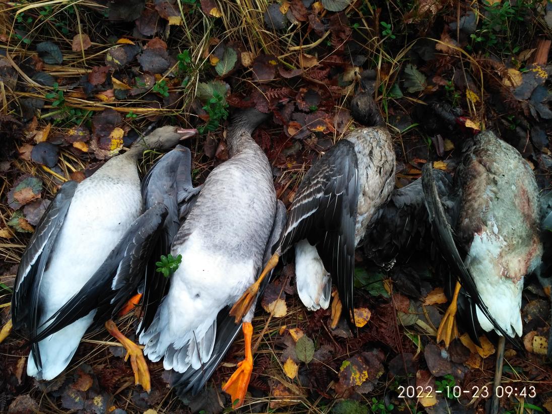 Немного отпишусь по гусиной охоте в эти выходные. Приехали в субботу ещё затемно, только вышли из машины сразу услышали гусиный гвалт, от машины до болота около 3 км. Пока шли гвалт не прекращался, однако слышно по голосам что часть гуся уже с болота уходит.Пришли на болото , к скрадку не подойти, в округ сидят гуси.Полетели транзитные стаи небольшие голов 20-50, шли с интервалом минут 15-20. Лёт продолжался где то до 11 часов, из всех стай что летело кроме одной все валились на болото.В скрадок удалось сесть и расставится часов в 10, подняв пока шли до него голов 200.В общем такого эдьдорадо я ещё не видел, на болоте находилось несколько тысяч гусей. На манок и чучела гусь не реагировал ни как,что в принципе объяснимо-трудно соперничать с тысячами натуральных манильщиков. Перелетал гусь исключительно одной стороной болота, за весь день не было ни одного шанса, ближе 300 метров не разу не приблизился к скрадку. В течении всего дня часть гусей поднималась, выстраивалась в клинья и уходила на юг. Удалось открыться только на вечерке, было несколько хороших налётов но подвела стрельба, взяли с приятелем по 2 шт. После стрельбы большая часть гуся снялась с болота. Сегодня с утра посидели часа полтора в скрадке, но в пустую.По разным углам болота шарахаются небольшие стайки, штук 30-40 на болоте ещё осталась..Когда выходили с болота села стайка штук 20. Из особенностей этого года, гусь очень шуганный, даже к сотням своих сородичей подсаживаются очень аккуратно, некоторые стаи ходят на кругах минут по 10. В общем охотой остались довольны, впечатлений масса, результат есть, остался только не приятный осадок от хреновой стрельбы. Уже приехав в город видел ещё две стайки, если на неделе с северным не уйдет поедем в выходные закрываться. IMG_20221023_094312[1].jpg