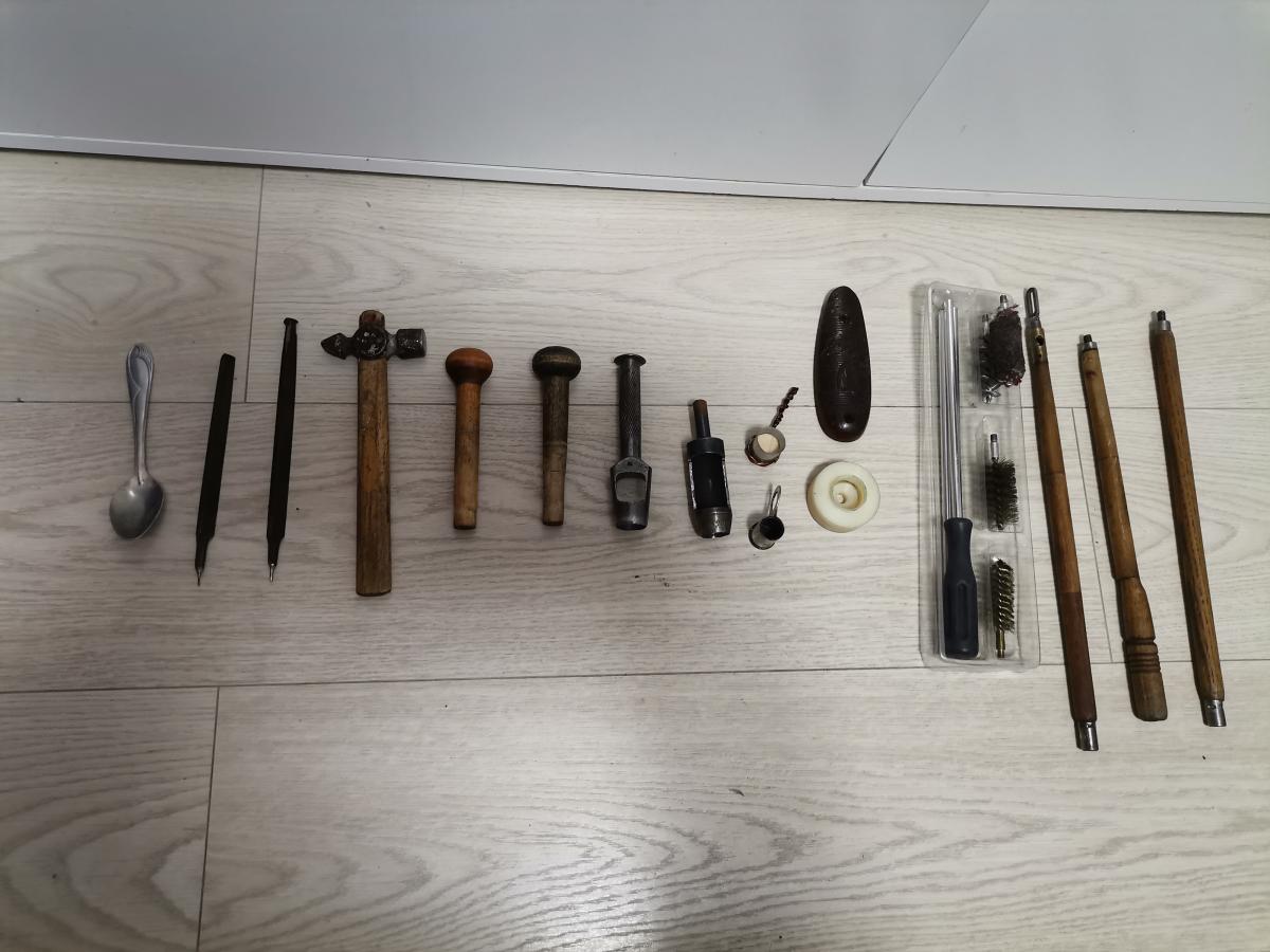 в комплект входит сейф,40 гильз латунных,3 потронташа,набор инструментов для снаряжения патронов,картеч(диаметр не знаю,4 входит в гильзу 12 кл)