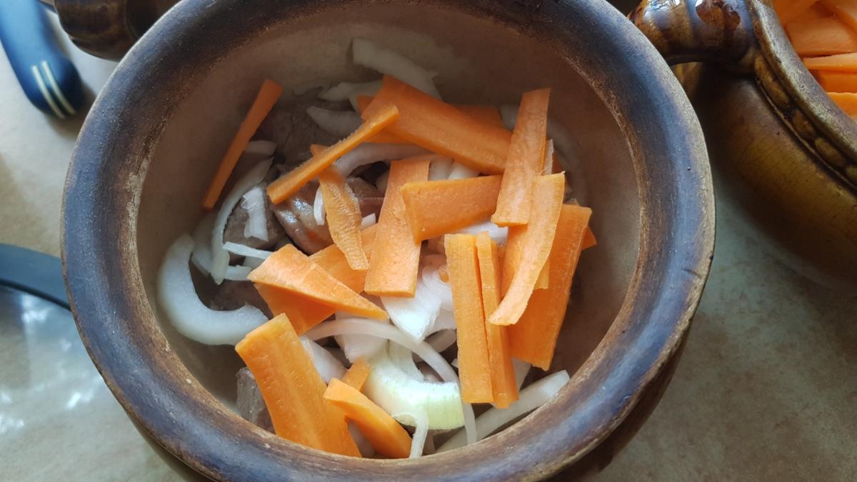 Вынырнул из ларя. Кручу в руках запечатанные в вакууме белые грибы с прошлого года и почему-то на ум прихотит совершенно другое блюдо, вообще не связанное с грибами: МЯСО В ГОРШОЧКАХ.