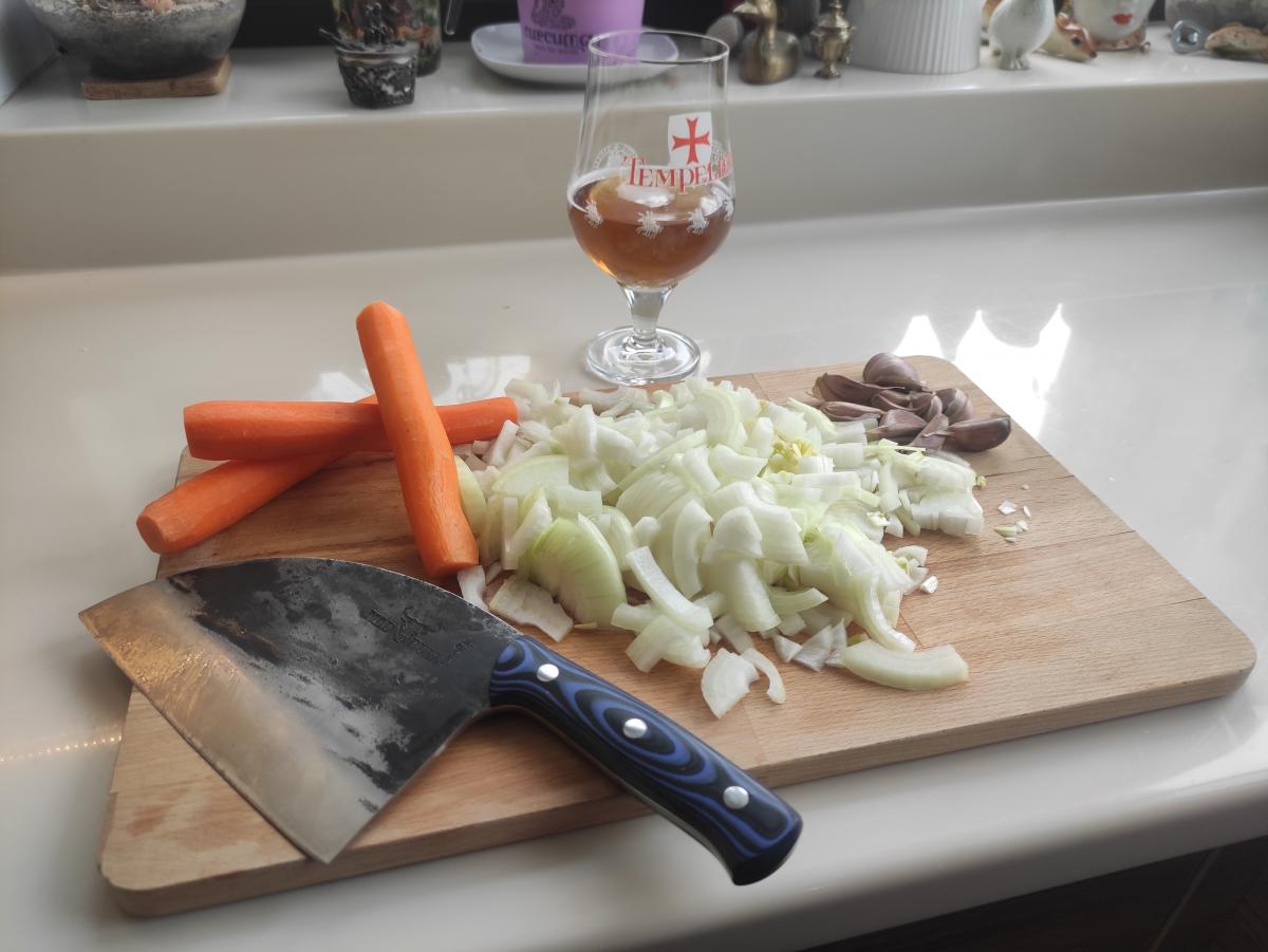 дальше все без каких-либо фантазий: лучок, чесночок (так вот прямо не мало) и тройка морковок, люблю я ее с мясом, да и ваще...я за эстетику, а она красивая :ag: