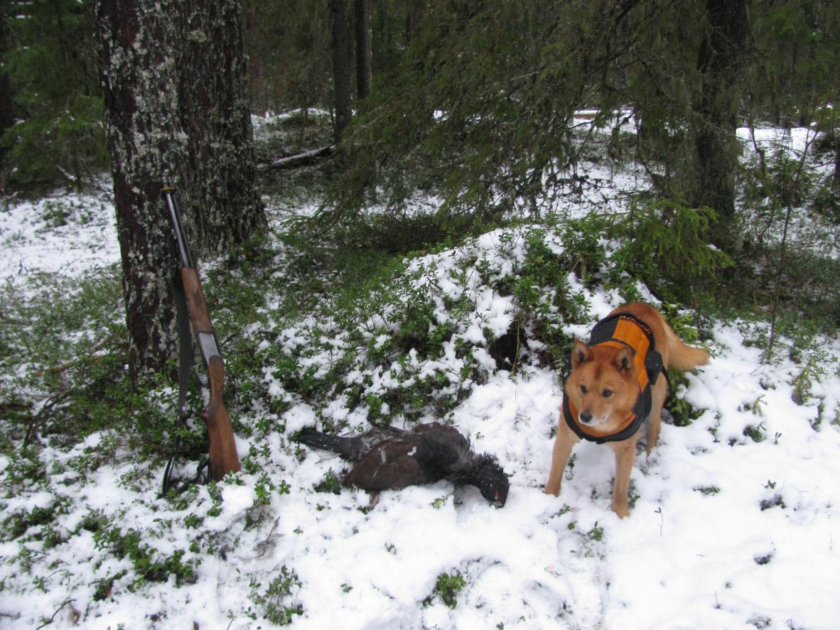 У родителей щенков в приоритете работа по глухарю, тетереву и по кунице. Обе собаки знакомы с лосем, работали по кровяному следу при доборе подранка. Тайфун находил и облаивал лося самостоятельно.