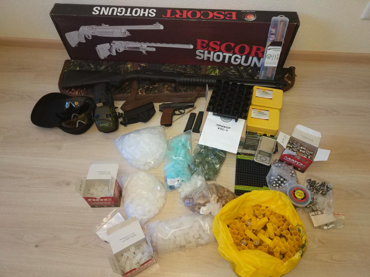 - капсюли (300 шт.)- гильзы 20 калибр с капсюлями (110 шт.)