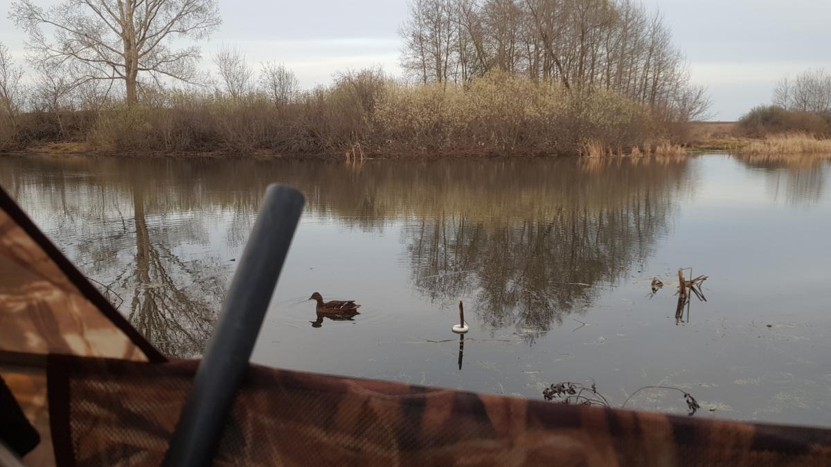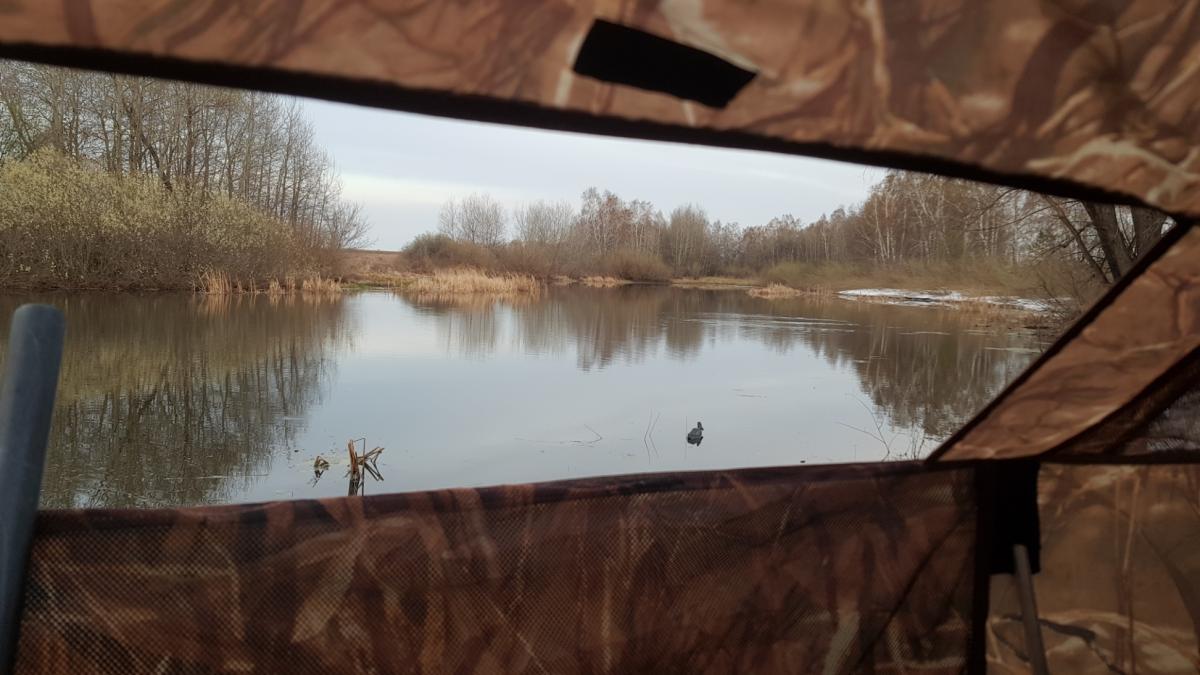 При подходе к озеру птицы не обнаружил, но оптимизма полные штаны, и я расположился у кустарника в скрадке.