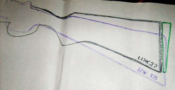 А вот интересно – ложе иж-58 и 27 имеют несколько различную геометрию, 58 прикладист (если можно так сказать) мне, а 27 нет. Вопрос: можно это исправить изменив с помощью затыльника ( на фото зеленый цвет) угол.