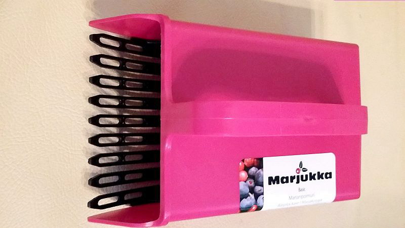 Перегородки придерживают куст у земли, при этом спицы цепляют и подымают ягоду вверх, тем самым плавно отрывают её. К тому-же, так-как между перегородками относительно большое расстояние, они легко погружаются в мох, и там уже подбирают "глубокую" ягоду. (обычный комбайн не может погружатся именно потому что расстояния между спицами этого не позволяют). И еще, ягода сразу убирается в рукав, а не болтается в зоне сбора как у обычного комбайна, поэтому характер сбора не меняется пока наполняется ягодосборник. А в остальном,-да, это обычный комбайн))))