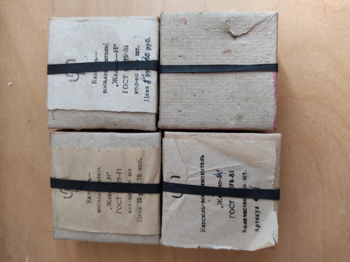 Продам капсюли " жевело " . В наличии 1000 шт . Все капсюли производства СССР . Проверил на сигнале охотника - сработали без осечек . Цена 1000 рублей . Забирать в Купчино . РОХа обязательна . Телефон для связи : + 79111941333