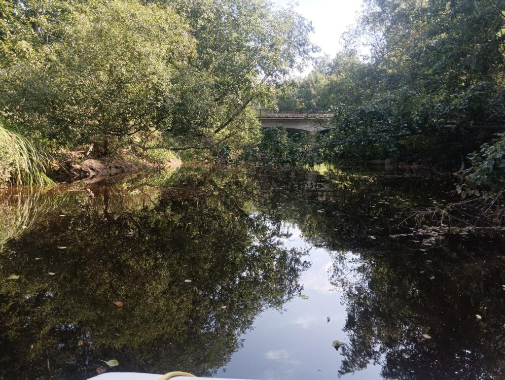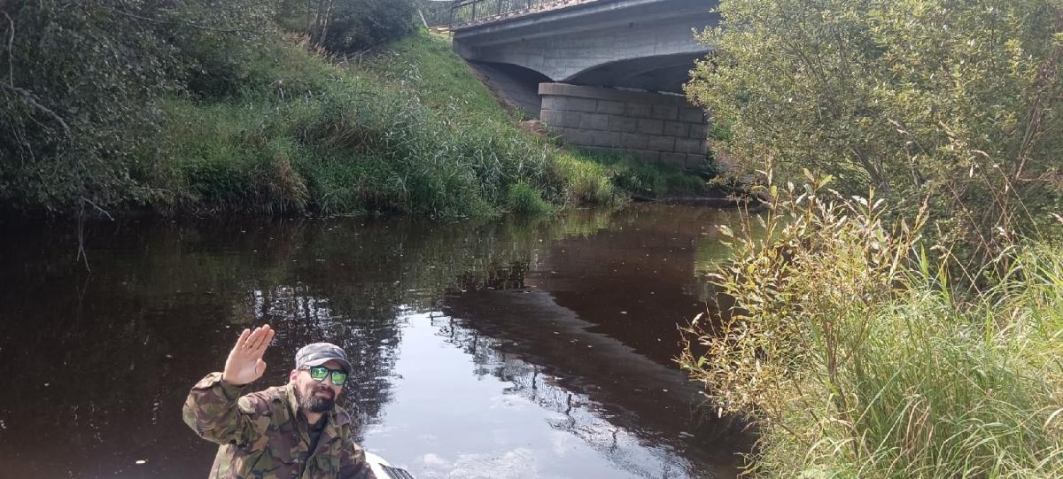 Но делать нечего,на Залив то попасть надо! Мы люди не гордые, 24 числа надули свою лодку под автомобильным мостом, пол часа лавирования между свай,камней и топляков и в 5.30 мы вышли в дэльту. Пешком протащили бедную лодку по мелякам,вышли в Залив и замаскировались в камышином кусту.