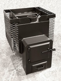 ак горячей воды выносить в помывочную, ёмкость нагрева воды на трубу. Печь меньшего размера полностью в парилку, помывочная обогрев из парики воздухом.