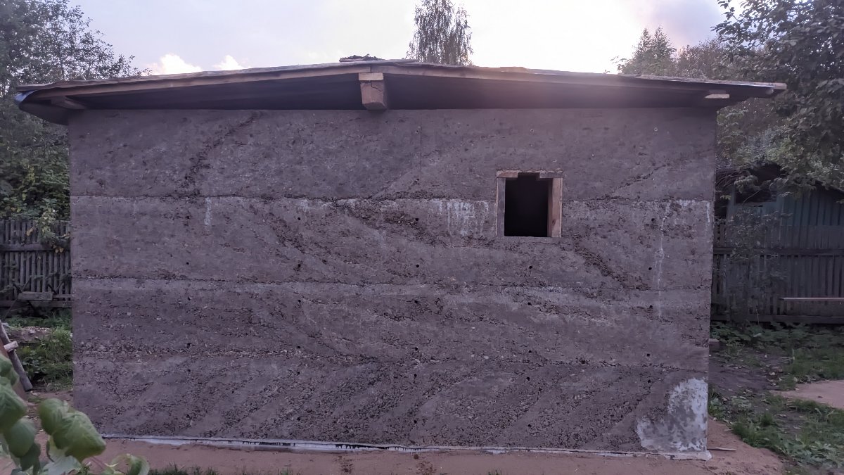 Решил уйти от дерева, насмотрелся на ютубе про опилкобетон но всё же из опилок побоялся отливать, купил щепы, отлил монолит из арболита но с добавлением песка (пусть будут стены похолоднее но прочнее) коробку отлил за 45 дней, 10 кубов. Буду накидывать временную крышу, весной начну с крыши, потом пол по грунту,