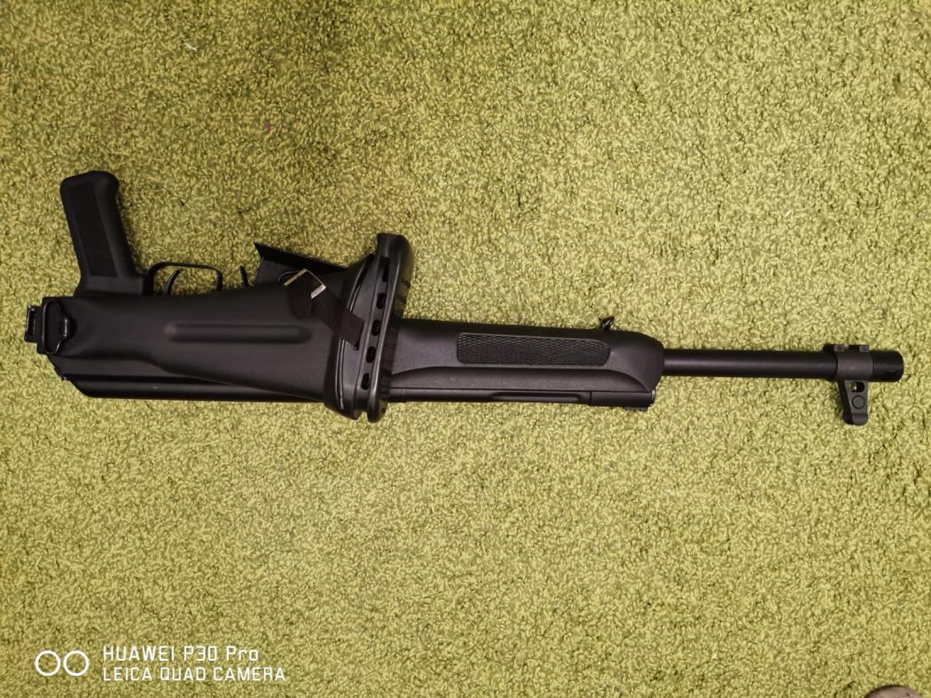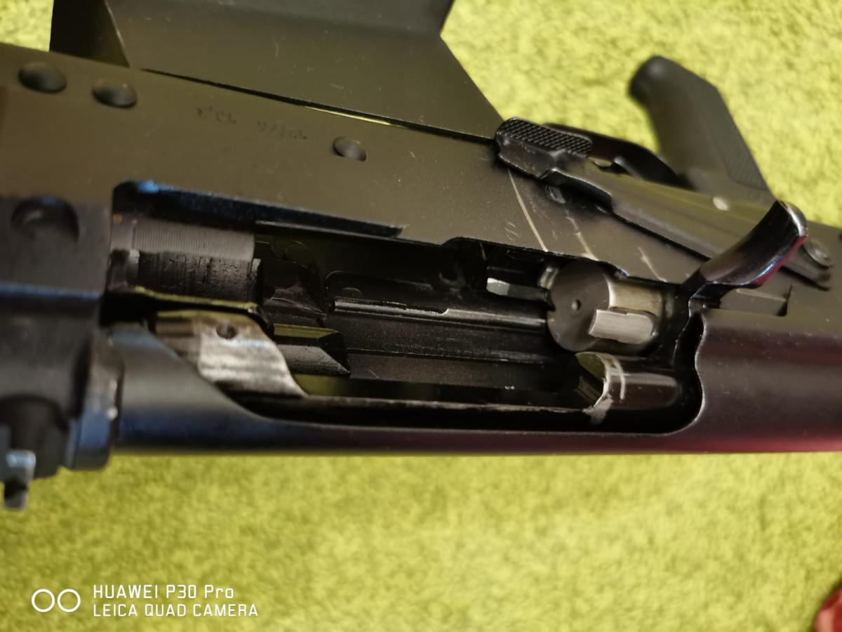 Из допов: 1. высокая мушка (комплект регулировочных ключей в комплекте). Пристреляна. После этого спилена стоковая мушка. 2. Установлено широкое примыкание магазина (не знаю как по науке называется). 3. Удалена защелка фиксации приклада. 4. Поставлен амортизатор для плеча.
