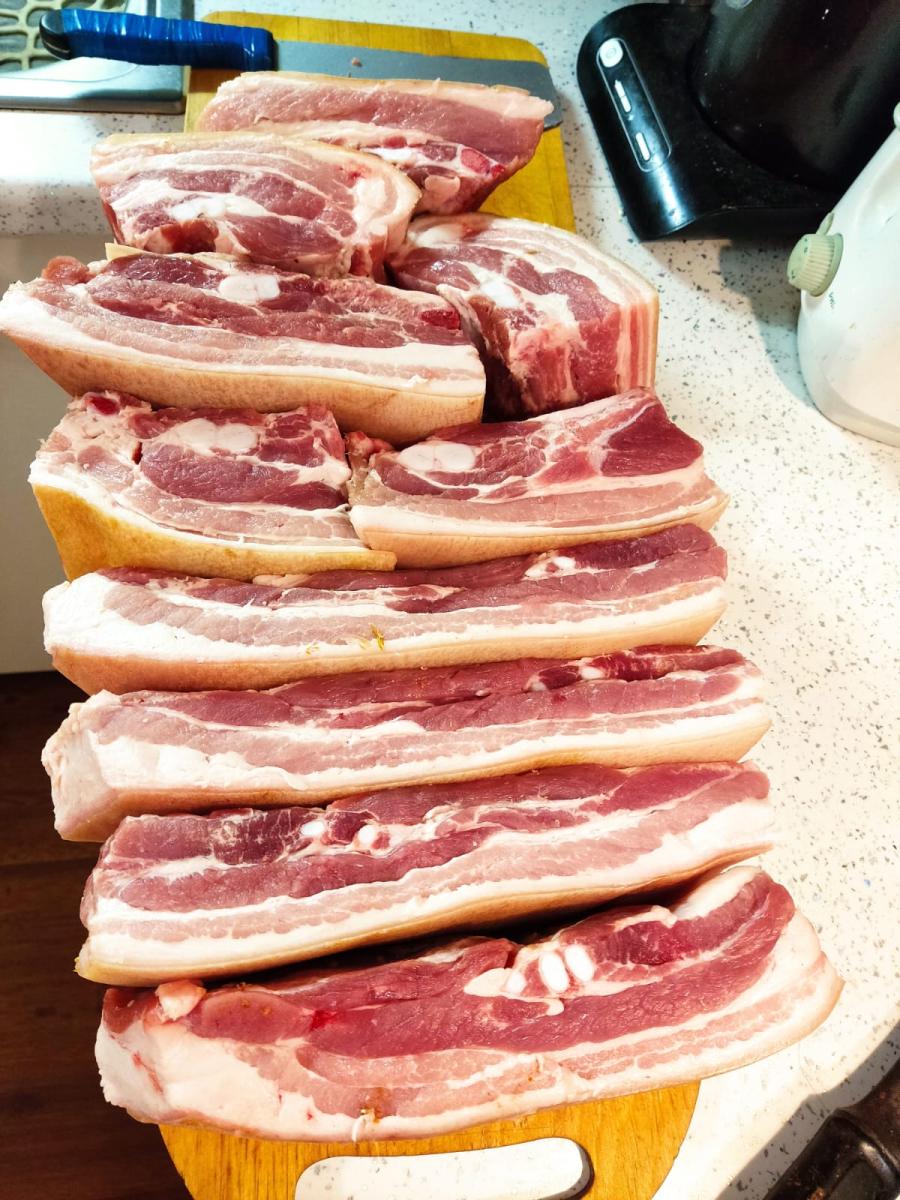 Нашел поставщика с очень хорошей, мясной грудинкой и что примечательно от опаленного свина.