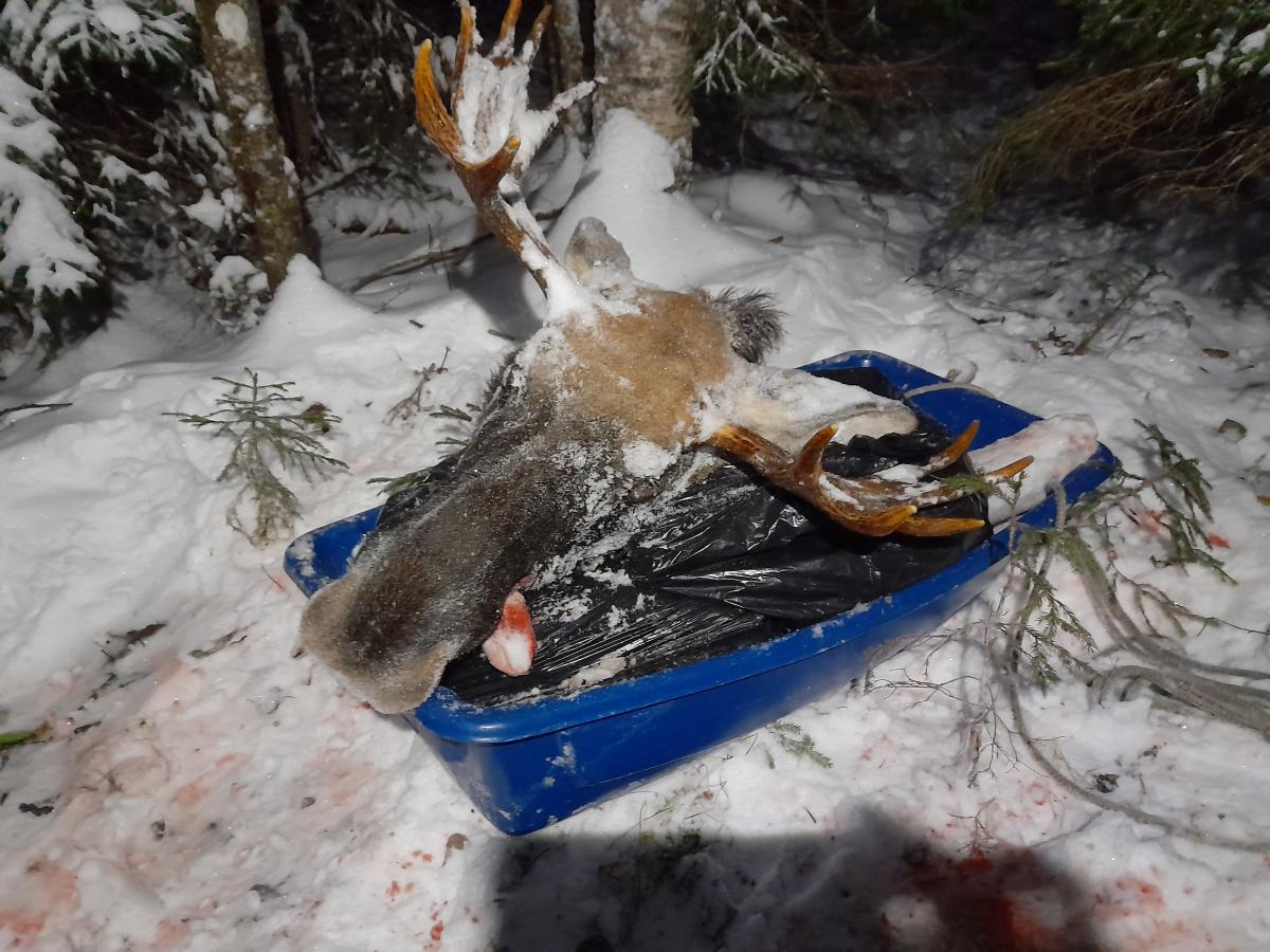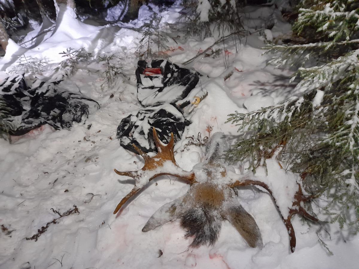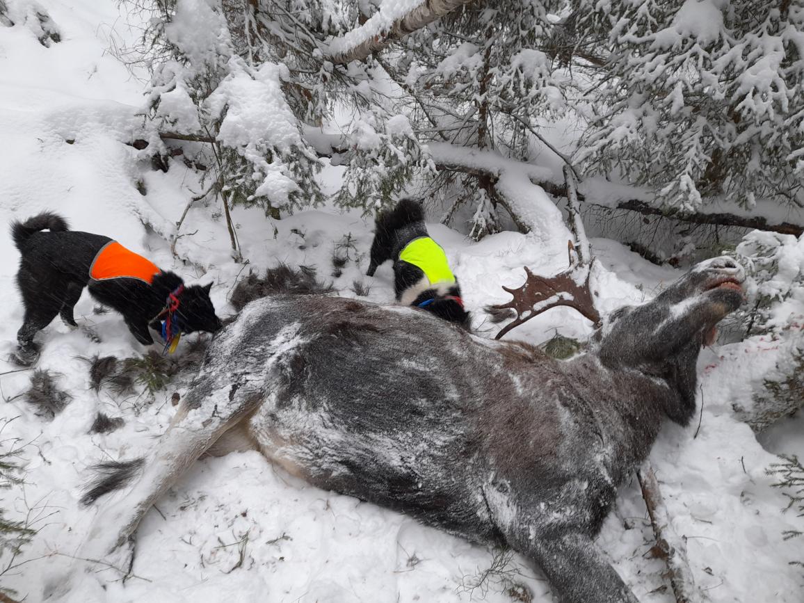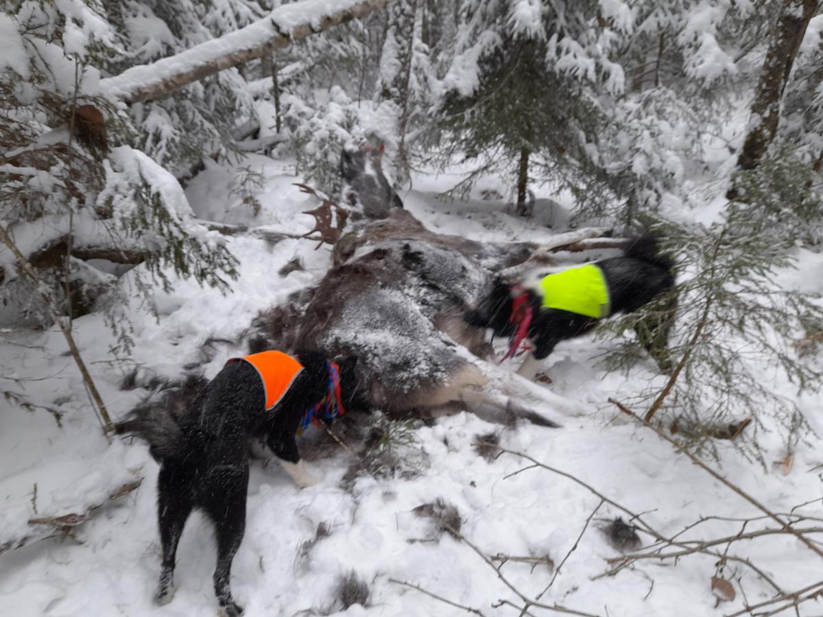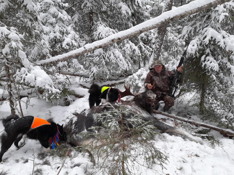 Лось под собаками в этот сезон стоит плохо, не хватало времени добежать на видимое расстояние.