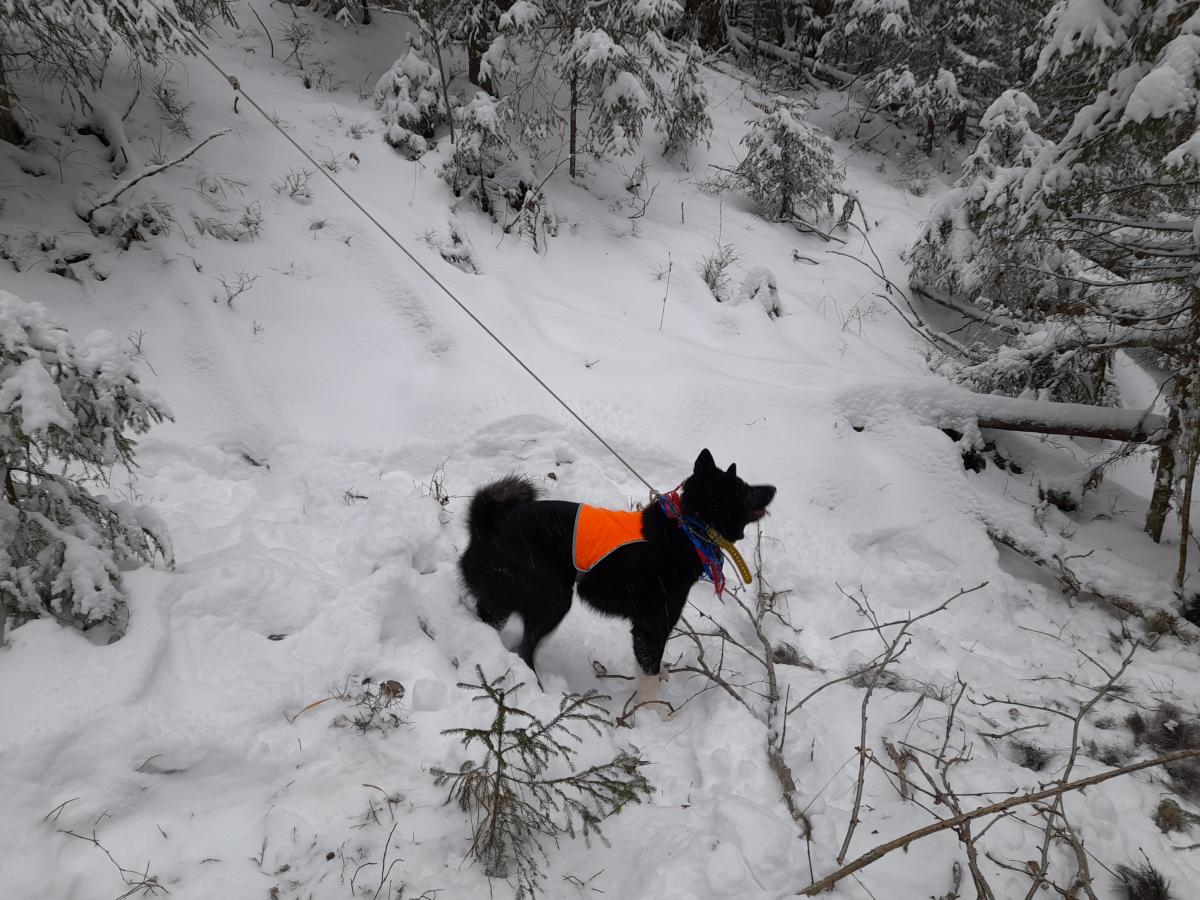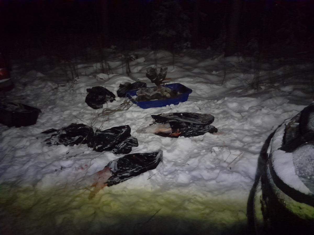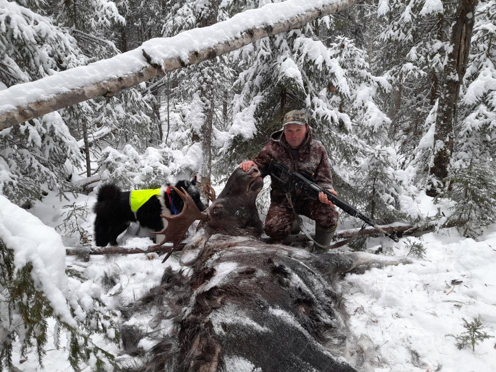 Охотимся вчетвером: я с другом и с двумя его лайками.