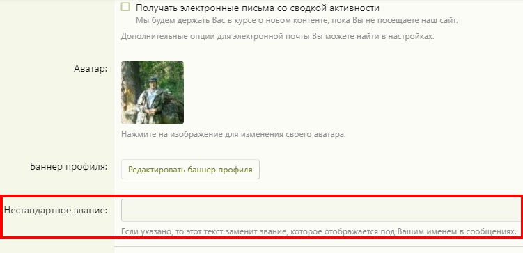Я же говорил, что цветной не исправить, только для всех. Кстати, эта возможность была открыта ошибочно. Закрыл доступ к изменению этого поля пользователем. А то, зная наших, понапишут там ...Вот только добавляет сверху, а звание остается. Проверил только что.
