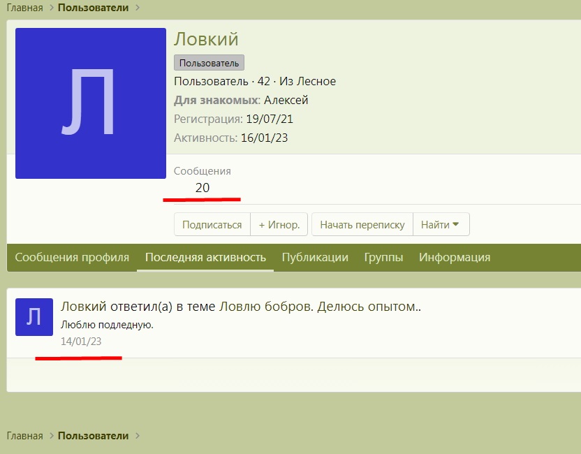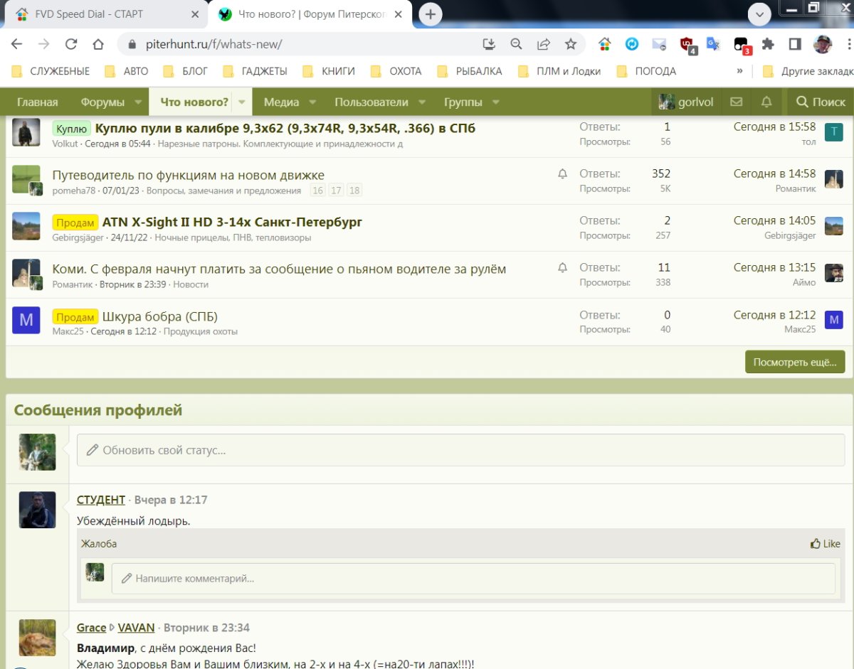 Вот наугад два скриншота из своего кабинета и Ловчего (собственно я его сообщения хотел посмотреть, но их нет...).все должно показываться