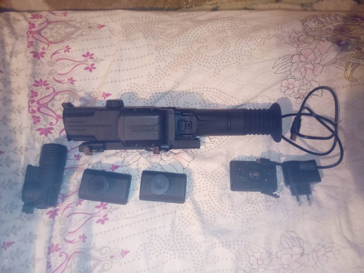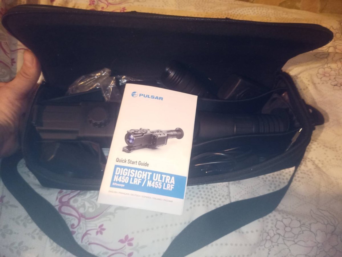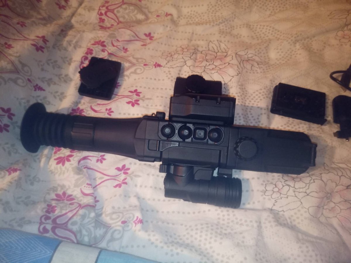 В комплект прицела входят : прицел , штатный ИК фонарь, зарядка , Два оригинальных аккумулятора , оригинальный кронштейн на вивер и сумка.