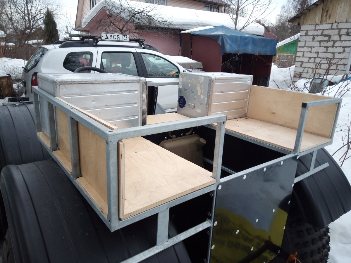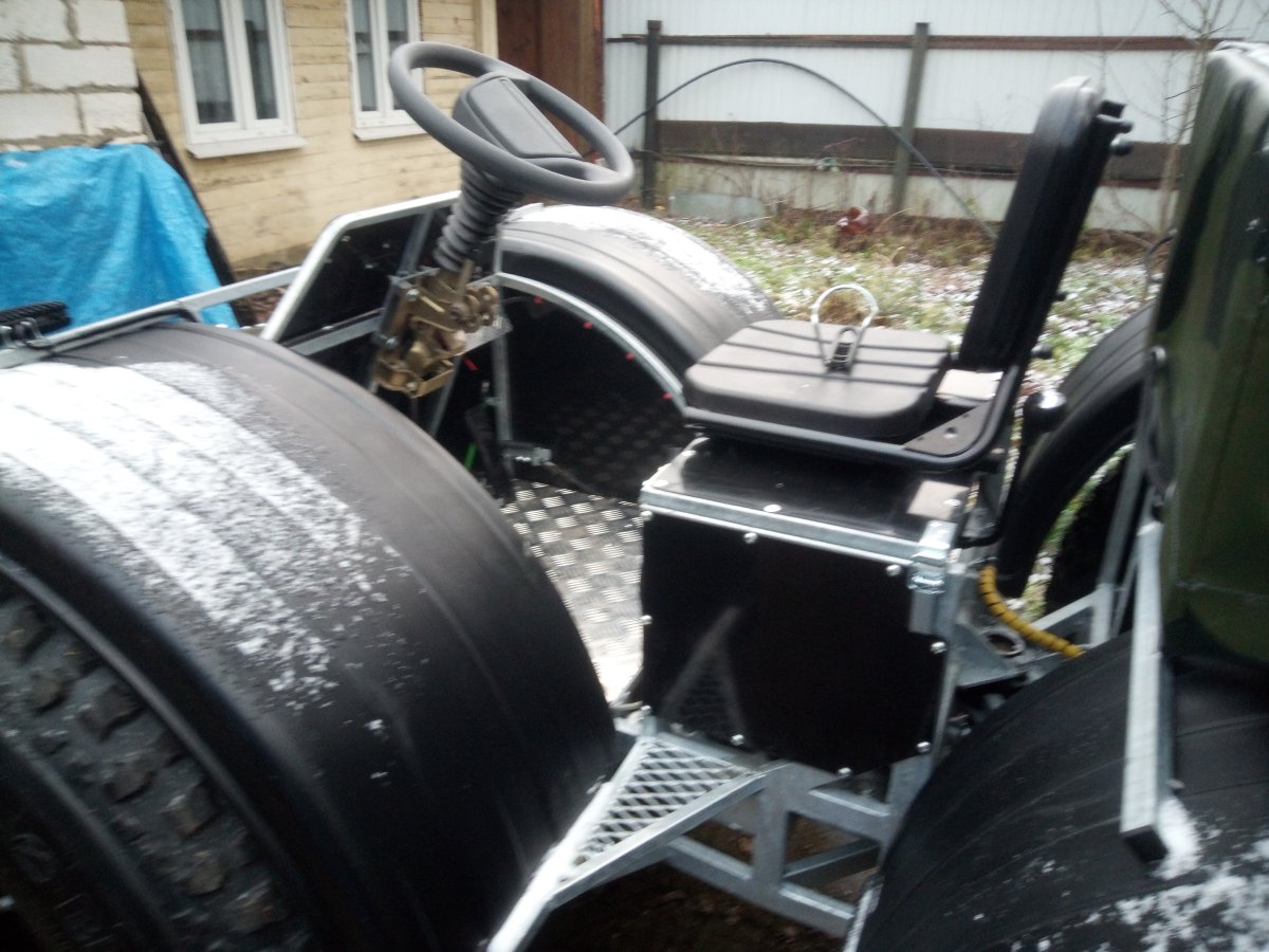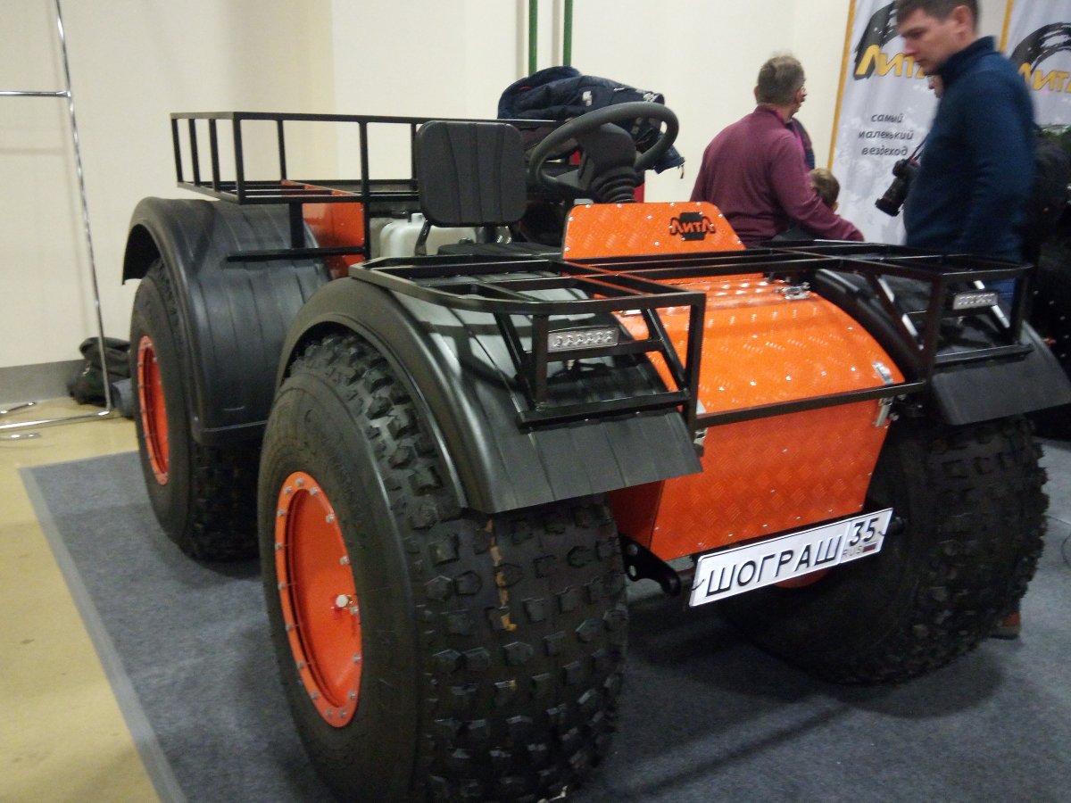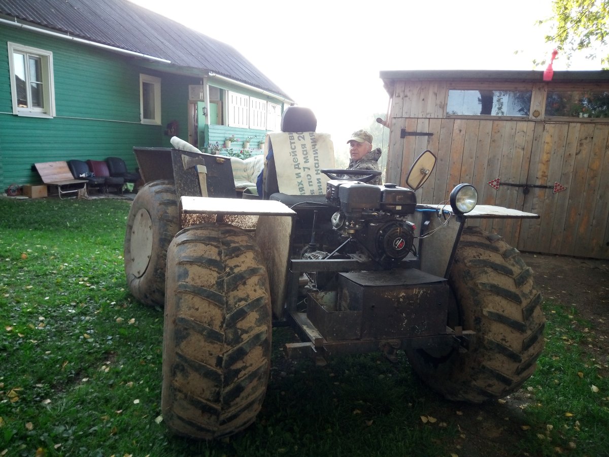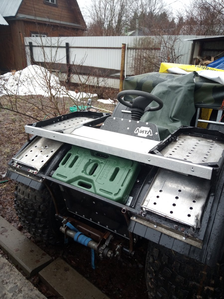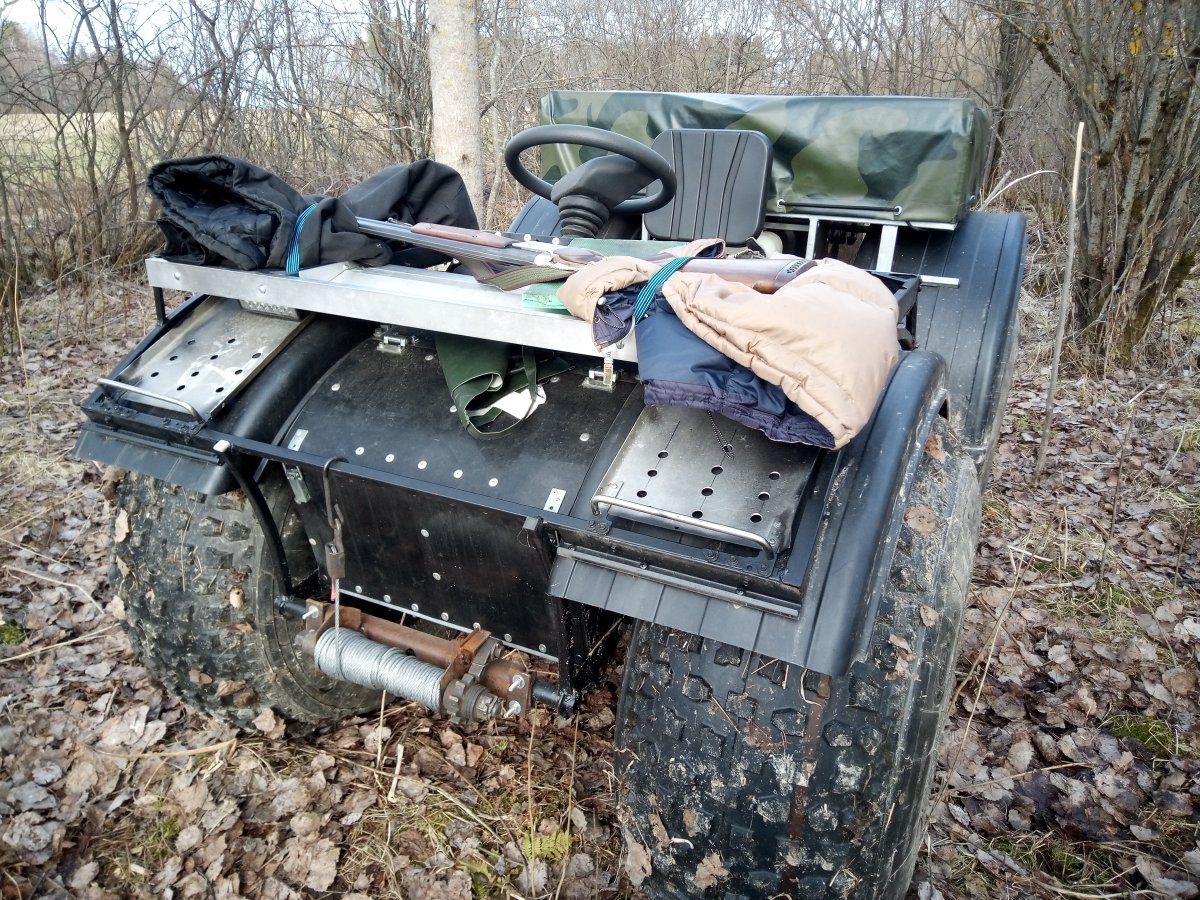 Вездеход переломка.Так получилось,что я в теме.Дом на стыке Вологодской и Архангельской.Переломки делают вокруг,и даже известные-Аврора,например.Нужен был небольшой,на двоих с вещами.Переломки на ободрышах,типа Зис5,отпадали сразу.Только заводская резина,бэдлоки,малый вес.Изготовление не на коленке.Имею опыт езды на колёсных вездеходах,износил четыре краза,два 260.Понимаю сечение вездехода,соотношения размеров,веса,мощности,колёсной формулы,типа трансмиссии.Если коротко-нужен был квадрик.Который ездит везде.Ну,вот он.