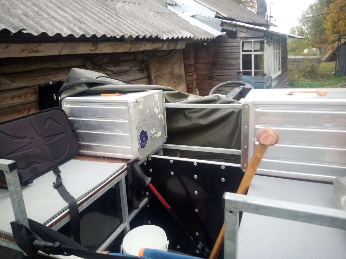 - рундук, которые не мокнет при заплыве. В нем у меня з\ч запасные, сухпай, якорь, лебедка ручная, насос, трос, литруха бензина, инструмент, прочее