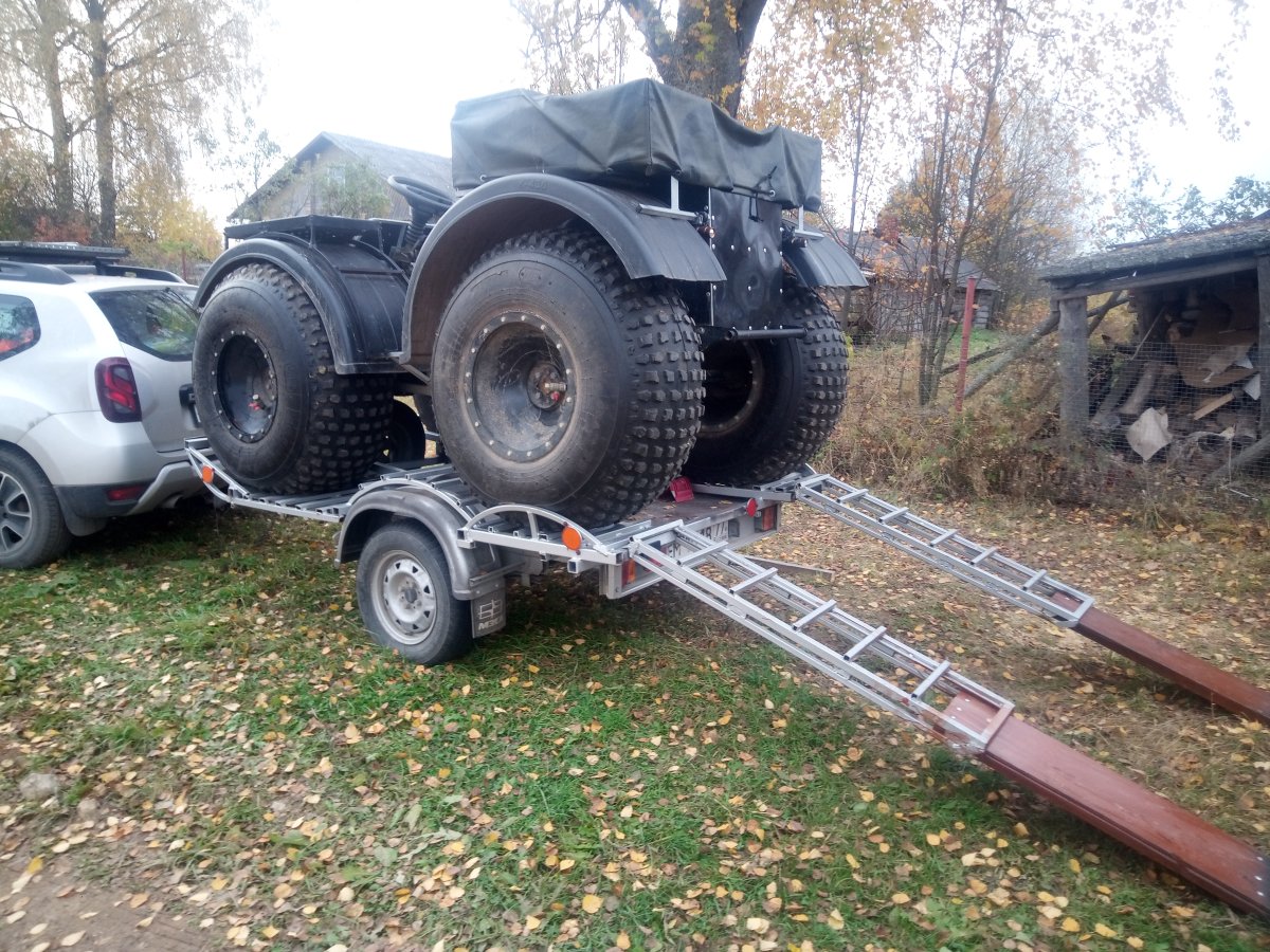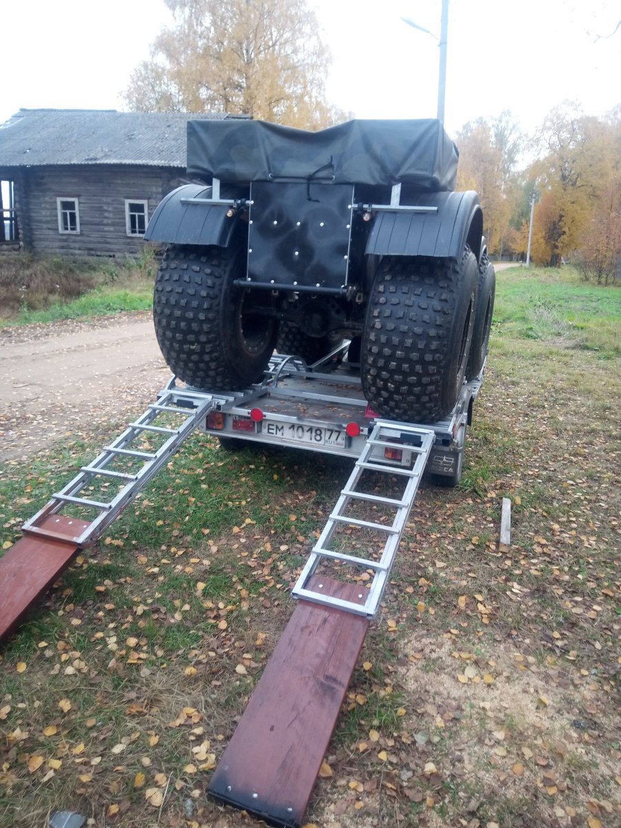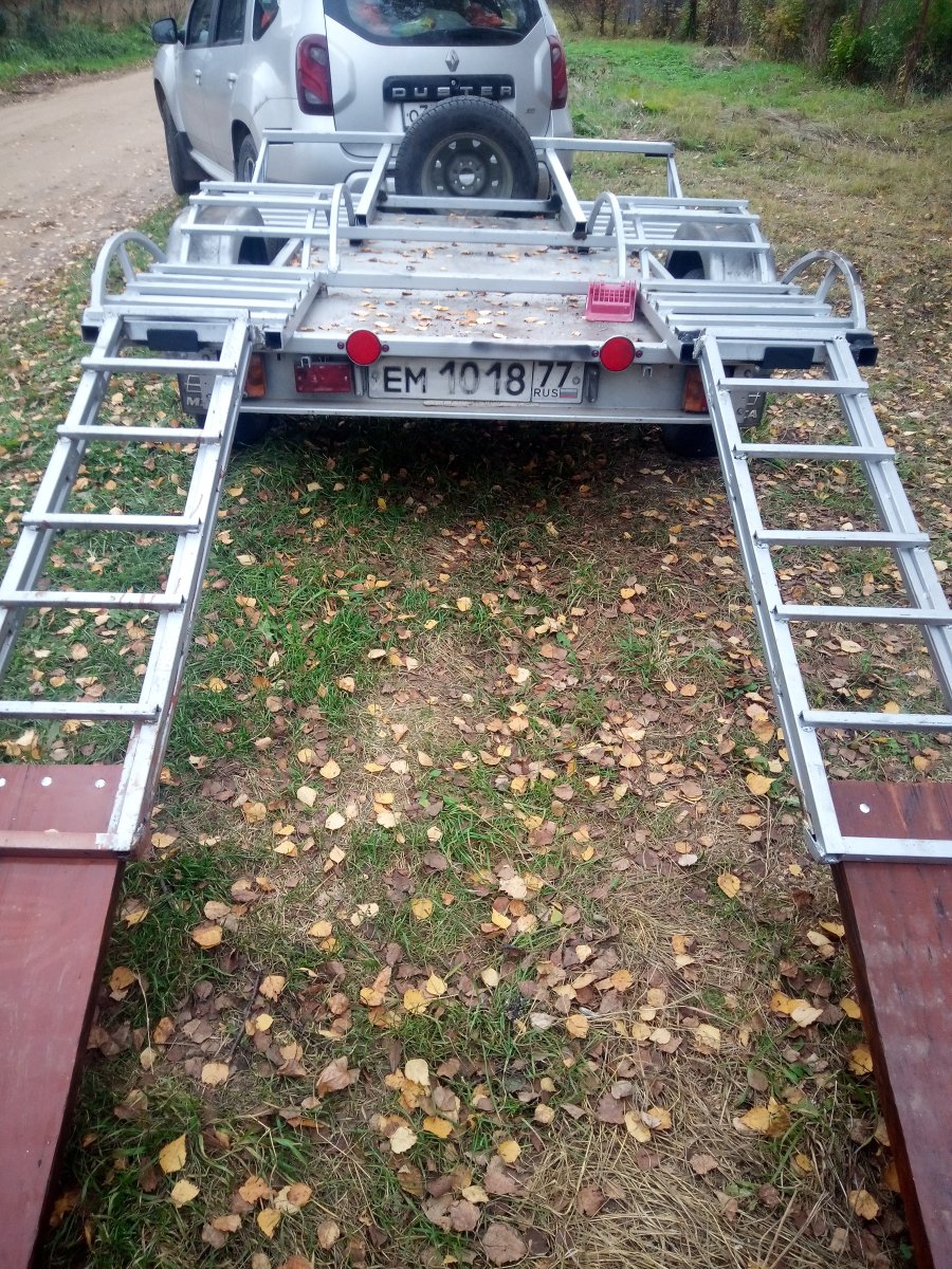 Увеличил длину аапарелей.Проще стало заезжать.Доску вставил в готовые,металлические.На прицепе Литл едет до места охоты,рыбалки,сбора ягод.Трснспортеая логистика такая.Мног дорог.На окраинах большого леса.