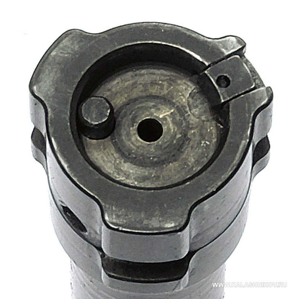 Говоря о системе запирания «Примы», важно отметить наличие шести боевых выступов поворотного затвора, расположенных в два ряда по три выступа.