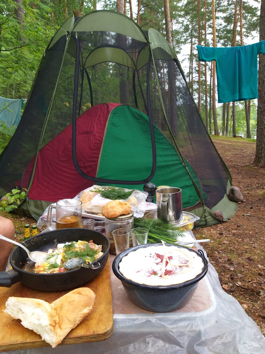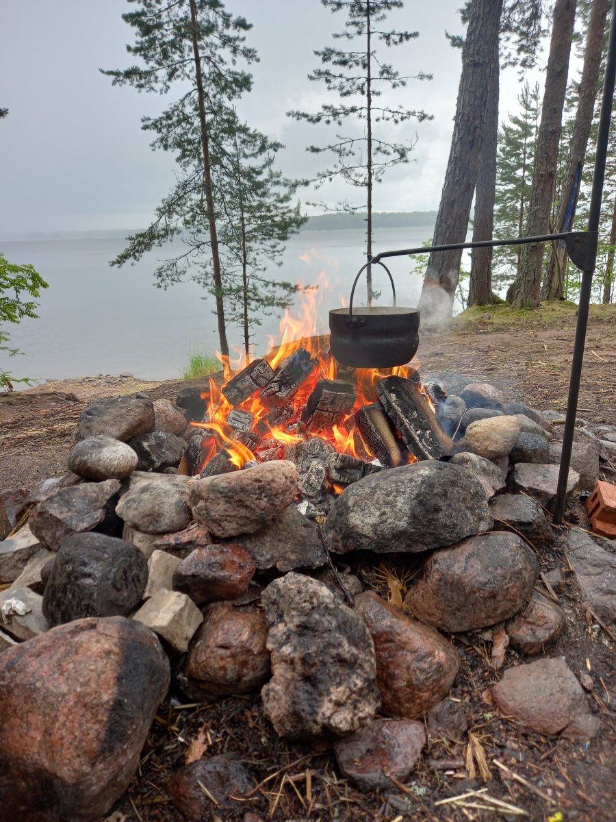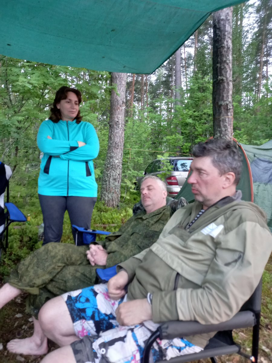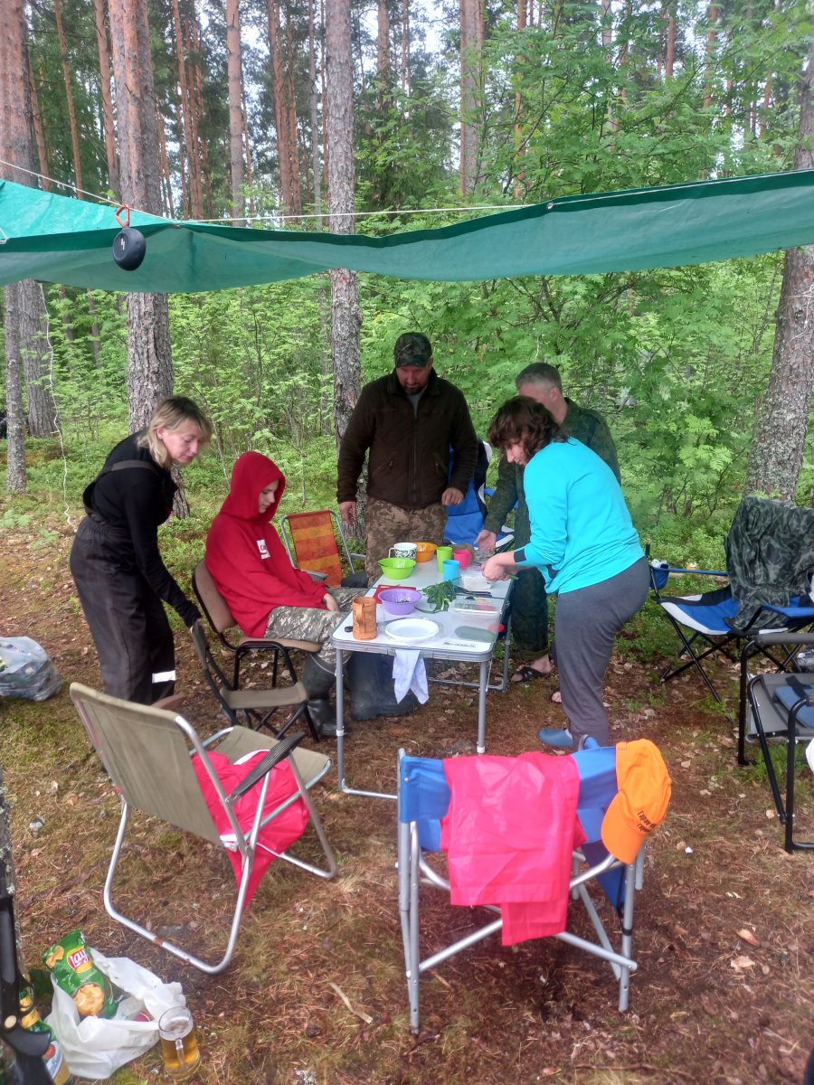 Некоторые) участники приехали вообще без снастей) на вопрос, как так, "а приехали чисто отдыхать"))) Я, увидев уже 3 лодки на берегу и поговорив с бывалыми и опытными, свою даже доставать не стал. В принципе, прав оказался. Погода менялась, давление скакало. Рыба там есть, на мелководье перед лодкой часто кто-то стартовал, оставляя круги, но клева не было. Поставил 6 жерлиц с неплохой красноперкой, итог нулевой)