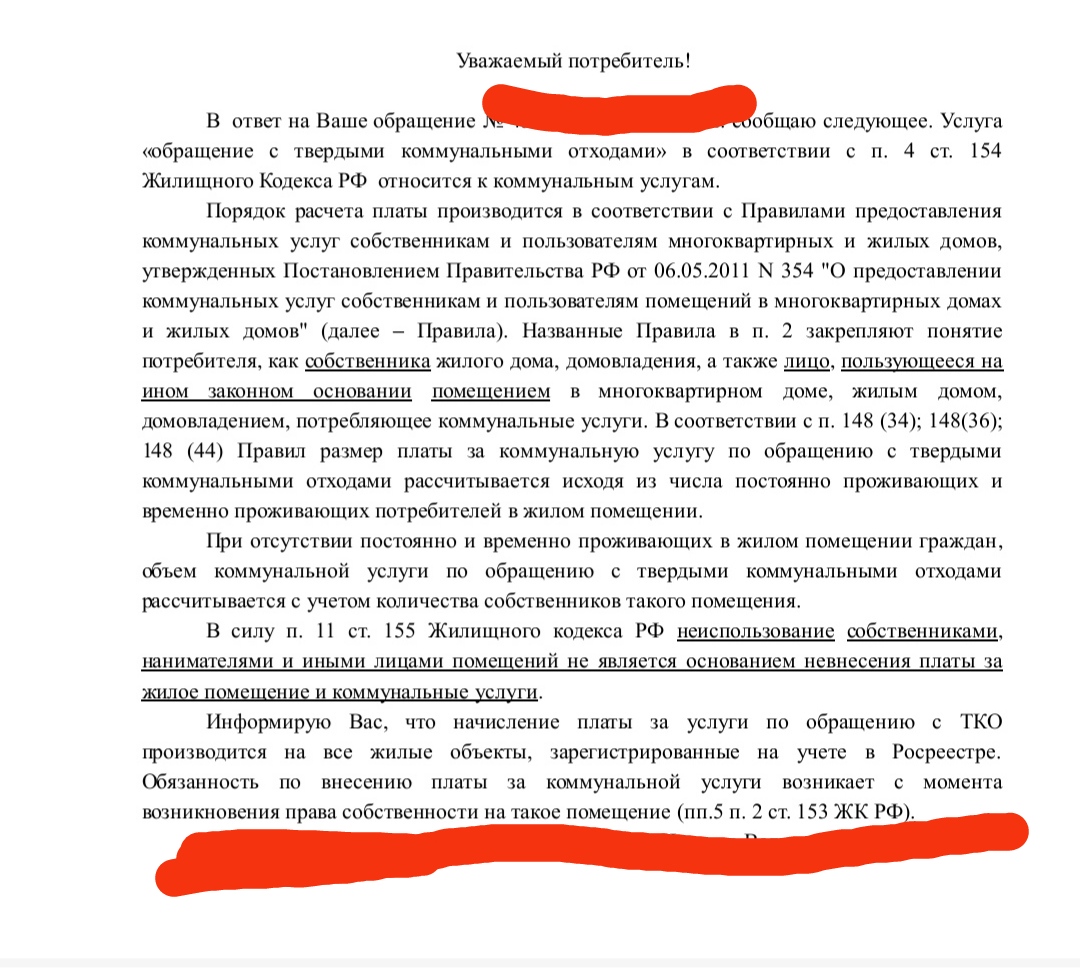 Как вариант. К примеру имею в собственности 3 квартиры.Проживаю и прописан в одной. За мусор плачу во всех т.к. по выше показанному документу не оплата не предусмотрена. Выехал и принес документ где прописан - оплату вернули. А там где не живу вообще получается нет. ДЕБИЛЬНЫЙ НЕДОРАБОТАННЫЙ ЗАКОН.
