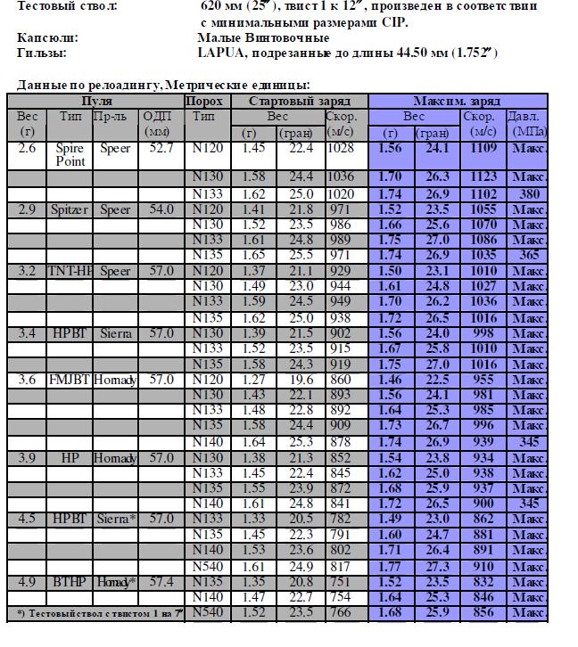 Не могу найти у себя таблицу длин пуль.. хотя была. Для Вашего твиста и скорости идеальная пуля длиной 0,7406 дюйма. Зато нашел на русском Вихтовский каталог. Если интересно, посмотрите под Ваш твист навески. Хотел весь каталог сюда прицепить, но не нашел как это сделать ((12" и пули "любит" в 52gr.