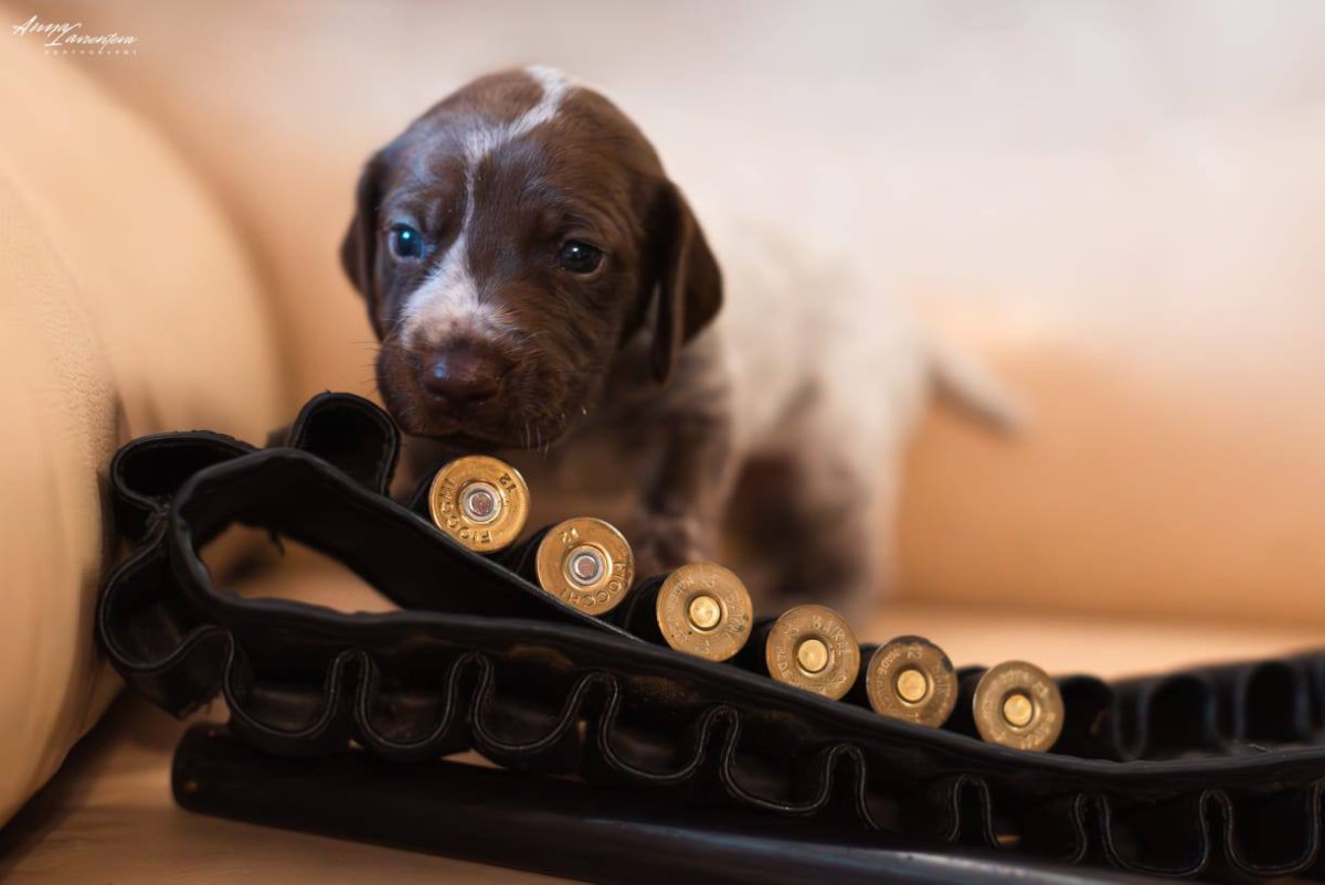 - Порода: Немецкий курцхаар с гарантией помощи в натаске.