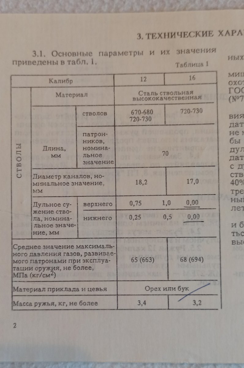 - Параметры чоковых сужений (для гладкоствольного): 0,00/0,00