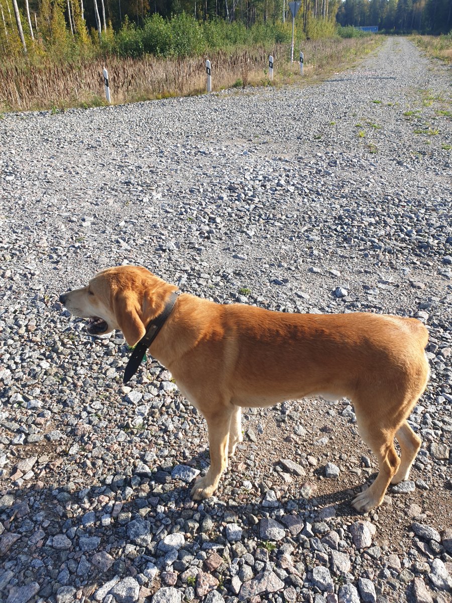 Охота проходила в Вологодской области. И это первая целенаправленная охота на зайца. Первого зайца подняли сразу в старой деревне из под ёлок. Я дал понюхать лежку и поставил её на след. Пробежав метров 50 выжловка отдала голос, это были первые три тяв-тяв по гонному следу. Потом она вернулась. Мы пошли по следу, она нюхала но голос больше не отдавала. Я следил за её поведением и старался угадать ход зайца. Пройдя метров 300 я понял что мы потеряли след.