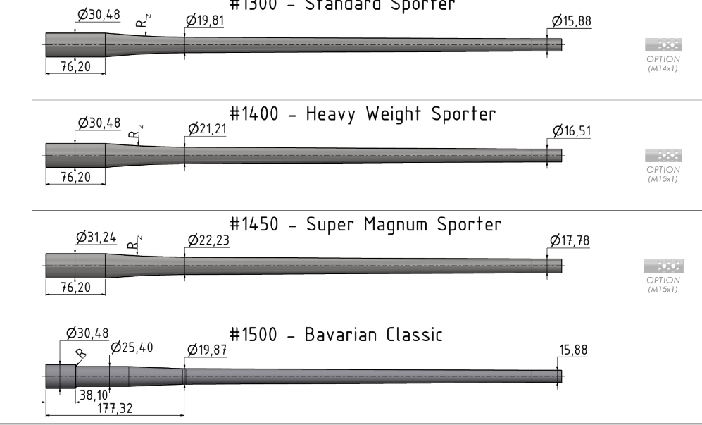 - Используемый боеприпас (для нарезного) Лоттер Вальтер кал. 30, твист 9, контур 1400, 1450 и кал. 6.5, твист 8, контур 1450, Bartlein кал.6,5, твист 7.5 и кал. 30, кал. 30, твист 9,