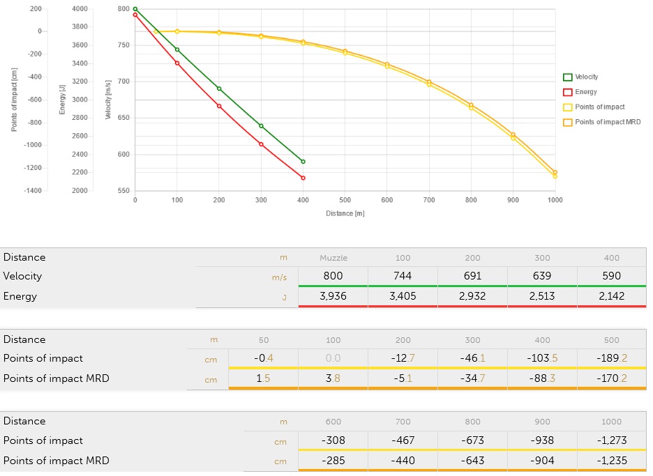 | Масса пули, г (gr): | 12,8 (200) | |