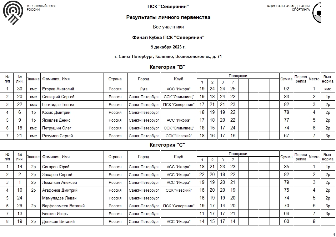 В каждой категории три лучших участника определяются по наибольшему количеству пораженных мишеней. При равенстве результатов – перестрелка дублетов до промаха.