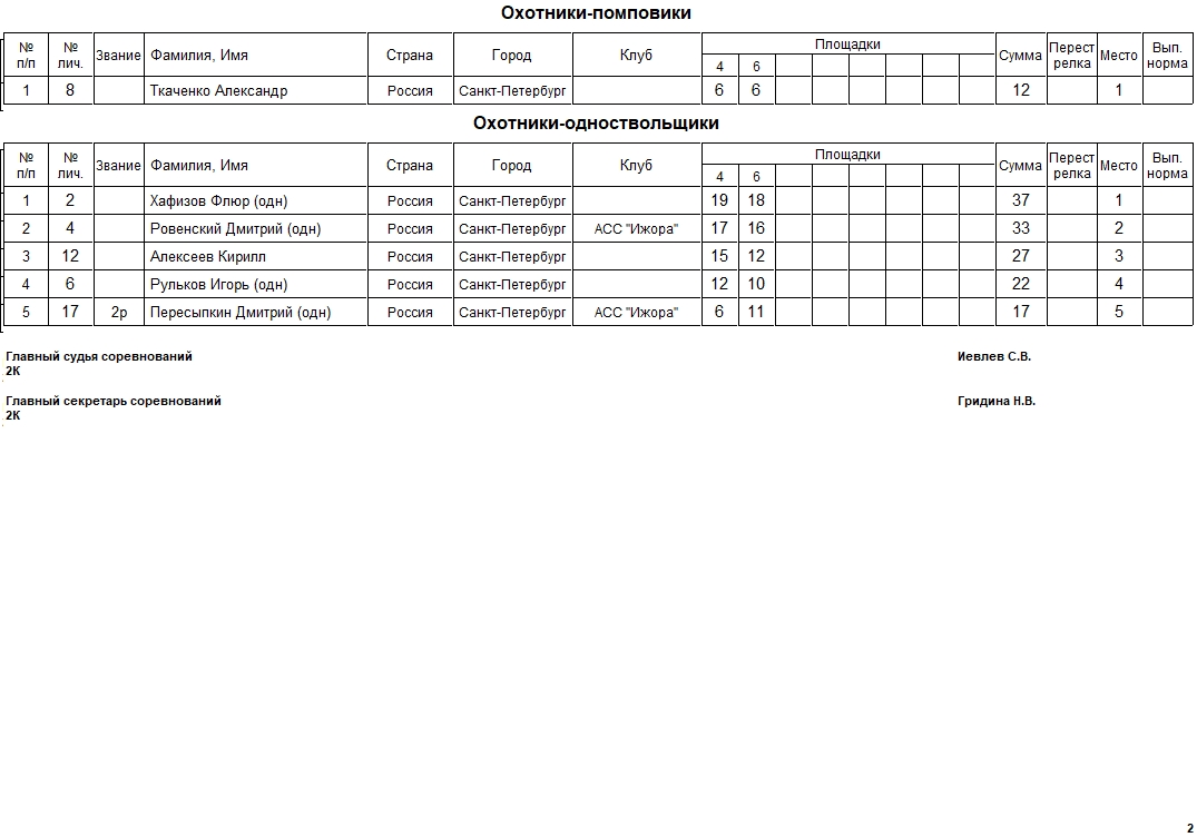 2 площадка – 3 одиночных мишени + сигнальный дуплет с номера (программа полетов будет указана на каждом стрелковом месте).