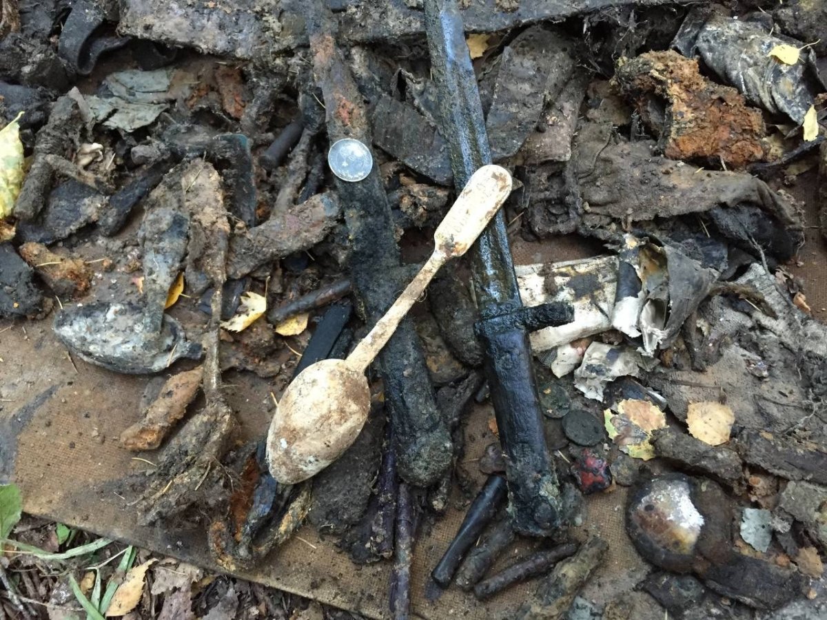 Также были найдены ложка с клеймом «Столовые Московского района» и капсула медальона с ушком на крышке.