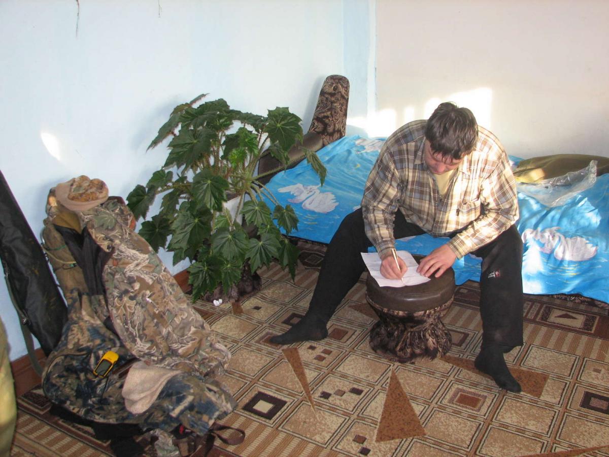 Мы накормили собак, умылись, переоделись в дальней комнате в домашнее с походного и сели обедать с, понятное дело, водочкой. Хозяин объяснил нам обстановку с бумагами, договорами, лицензиями и выдал мне промысловый охотничий билет в буферную зону заповедника.