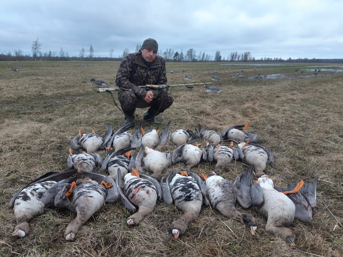 Молодцы! С полем!Открылись в псковской области. Погода конечно жесть была. Но гусь полетывал. Отлично отдохнули
